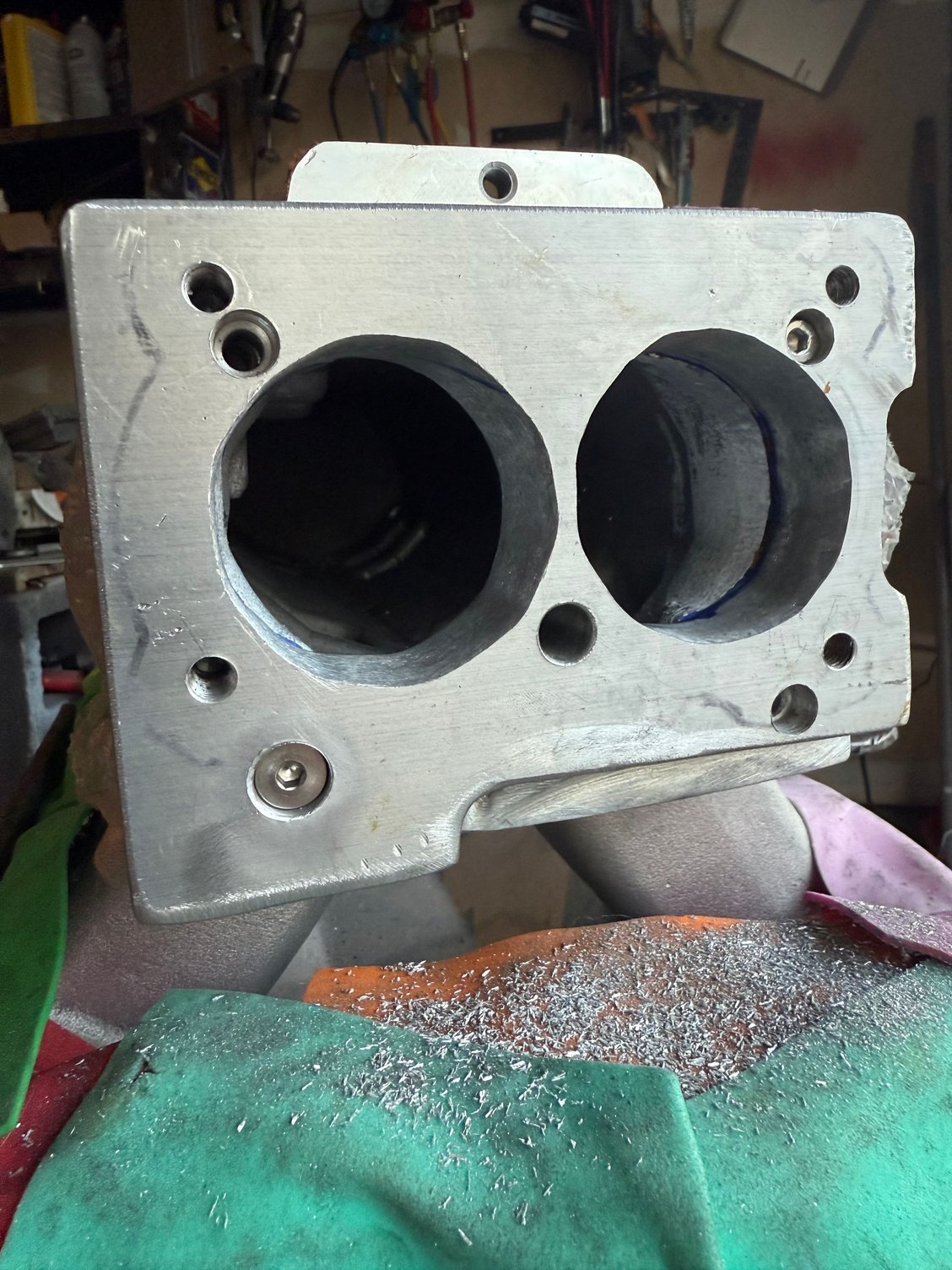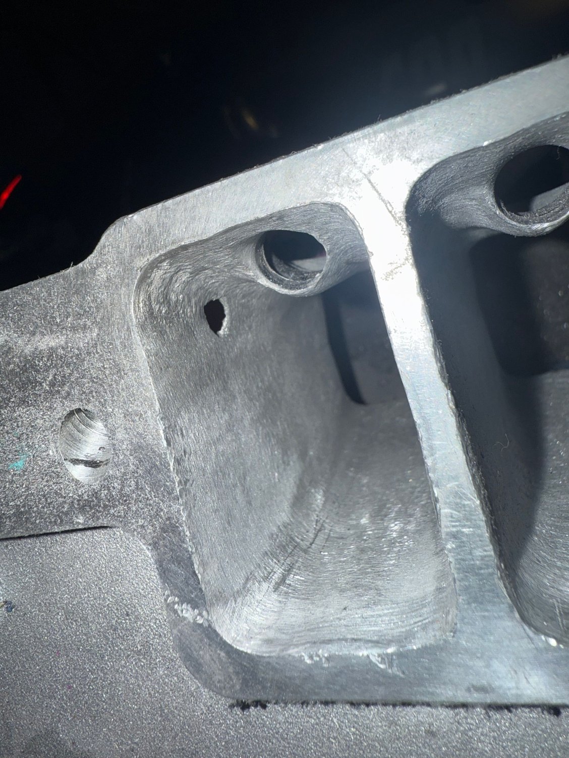 The second look shows too deep machining at the place for the injectors. This is on the injector number 1,3,5 and 7 (passenger side looks solid).