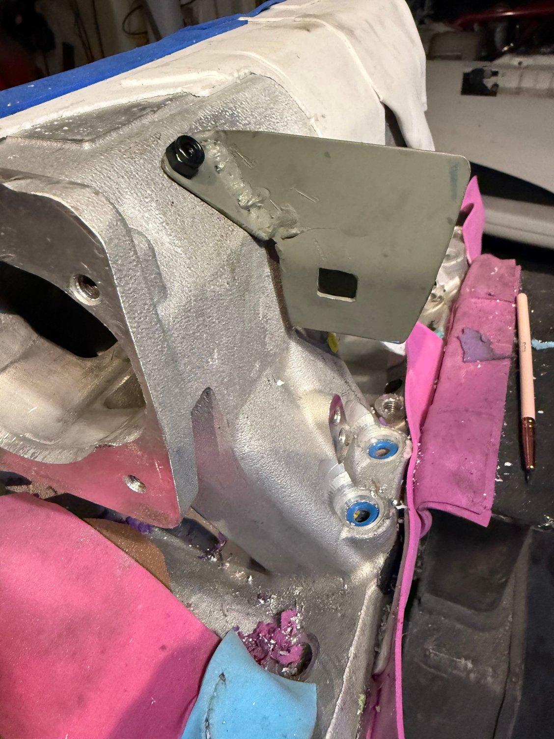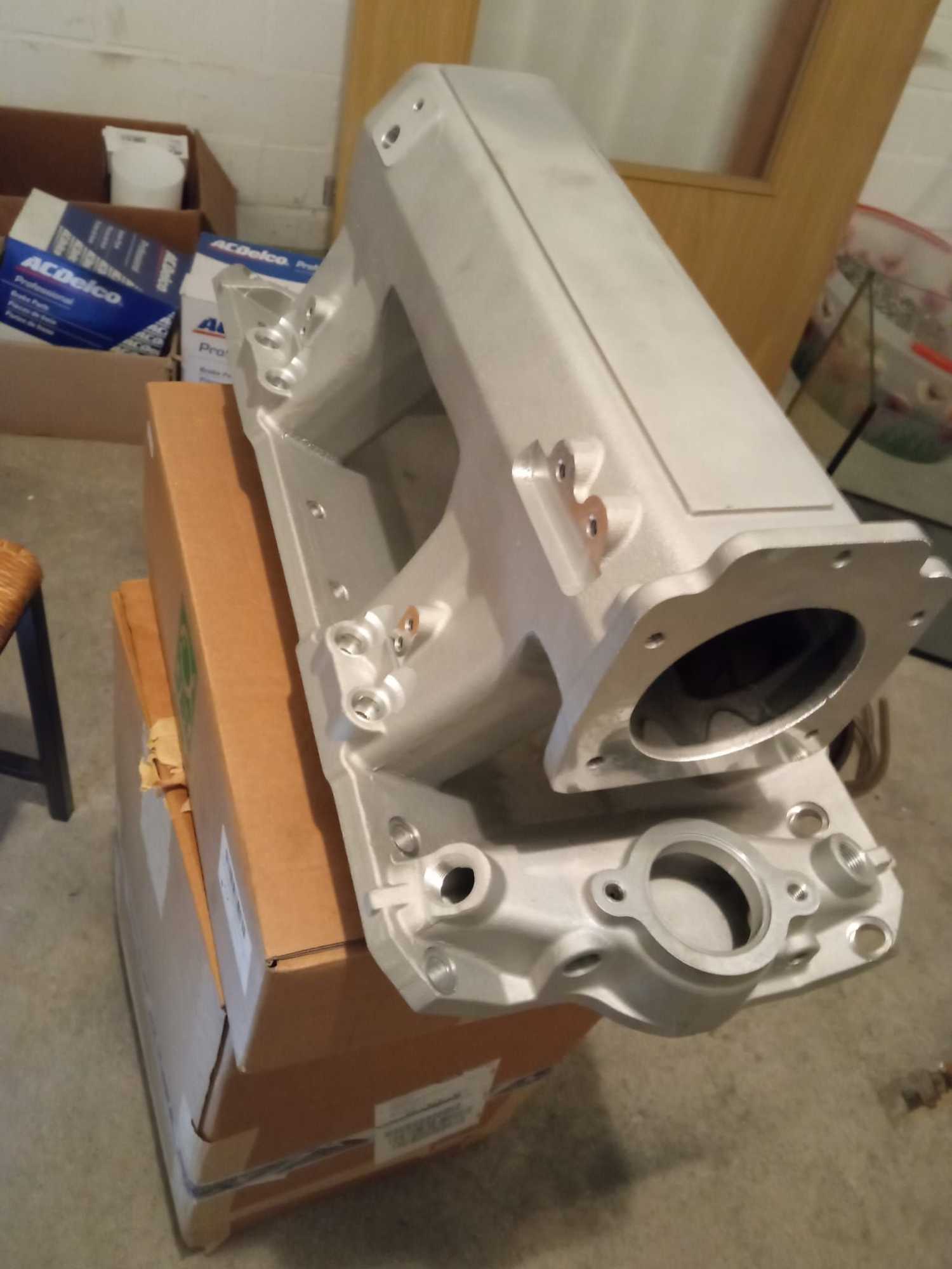 i decided to fab my own from sheet metal and a bit of “stakin tacks” with my mig welder. I plan on drilling and tapping the plenum.