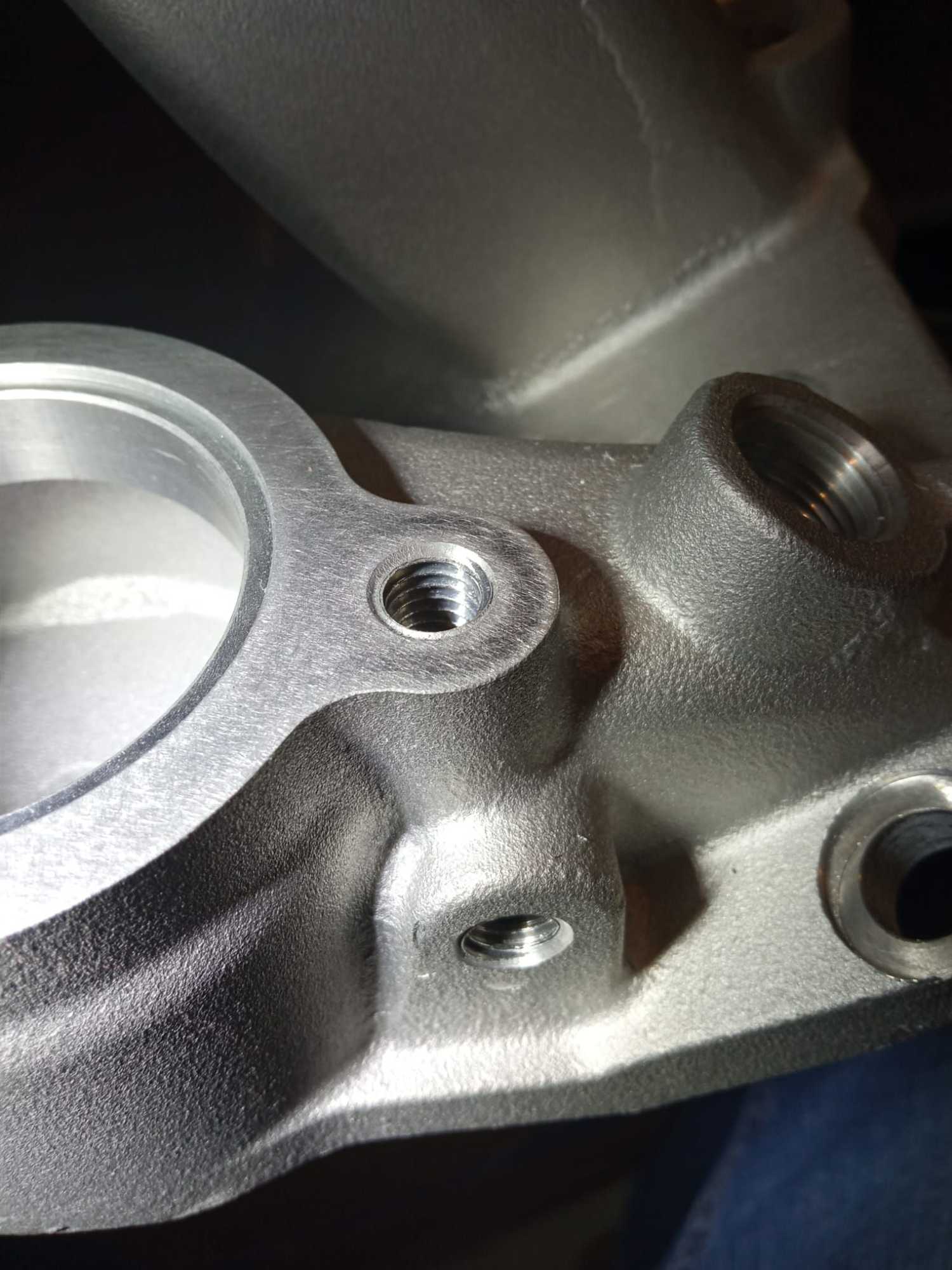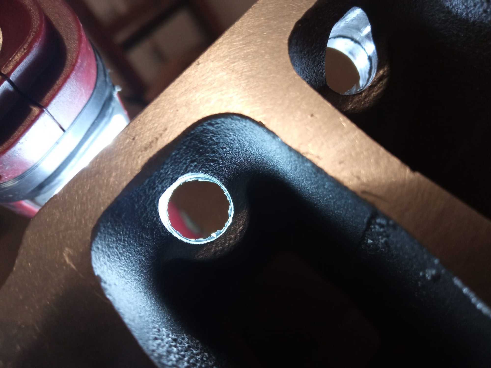 If you watch closely you can see light shining out of the hole. No real problem as well because there is no coolant passage there ending in.