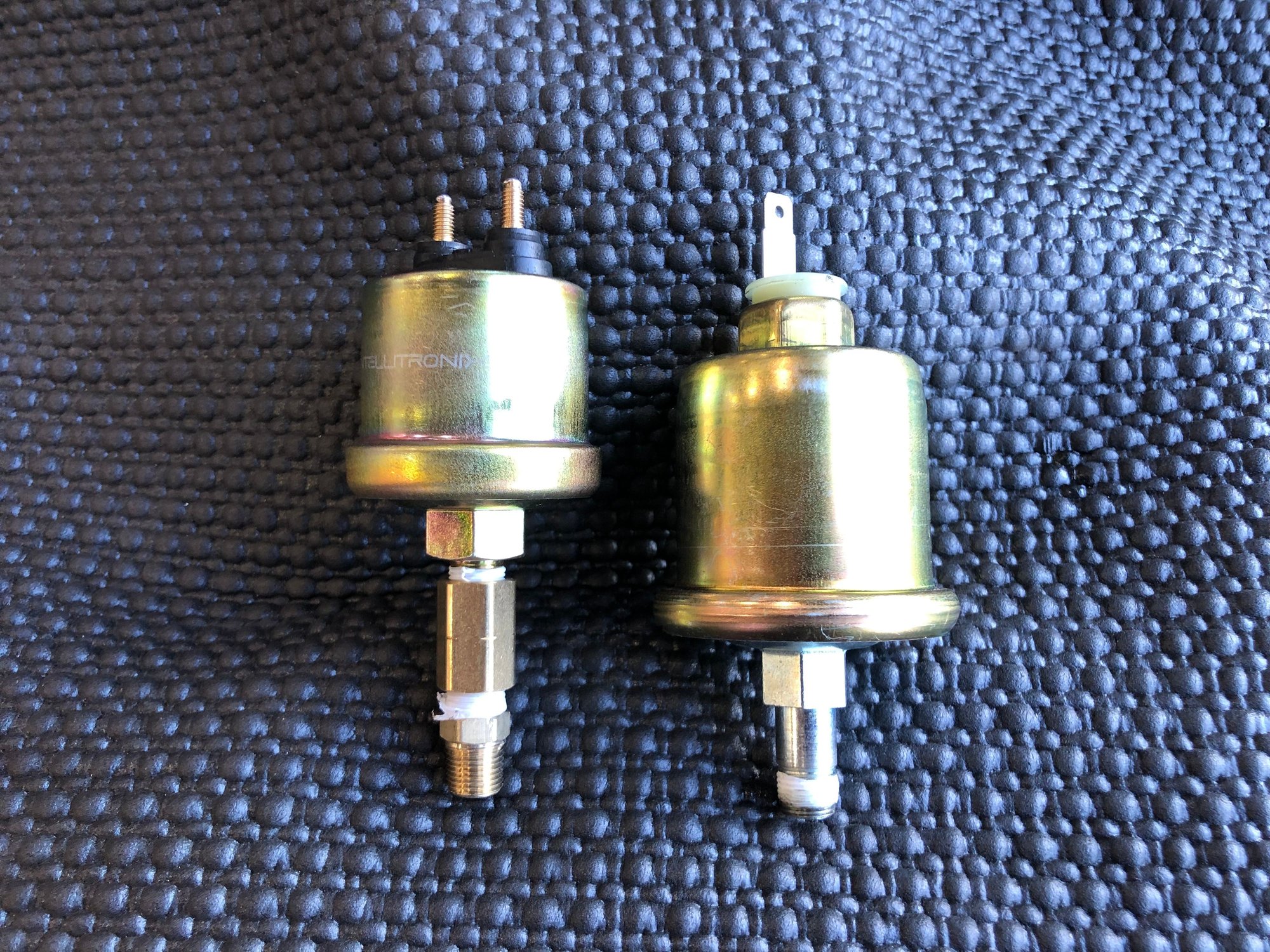 The instructions said I could use a standard one-wire SBC oil pressure sender but that obviously wasn't working. I had to buy intellitronix's special oil pressure sender (part number S8868). my sender is at the back of my LS engine behind the intake so it was a huge pain to swap them out. I couldn't screw the sender into the block adapter because the underside was too short and was hitting bolts on the valley cover. I had to get some fittings at Home Depot to get the sender up higher. The new sender has two connections - one for the gauge and then the other grounds to the engine. Guess the effort was worth it because the gauge now reads correctly. Pic comparing the typical SBC sender (right) and the intellitronix one after adding the fittings (left):