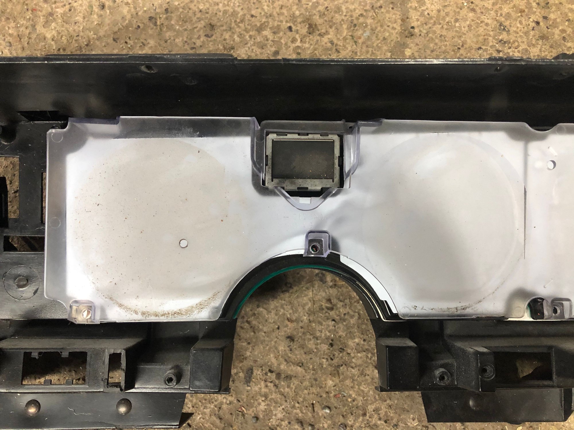 With the boards now fitting, I figured the rest should be easy. The next step is to install the front black gauge housing that was removed to install the circuit boards. Reinstall this using the screws that were removed when you took the cluster apart. The black plexi pieces sit on top of this black housing. It isn't clear whether these are held in place by the original clear lens of the cluster or by the large black gauge bezel on the dash. I tried using just the dash bezel, but then the plexi piece move around some back there - they just aren't held tight in place. I then tried installing the clear lens but the speedo / tach plexi cover doesn't fit at all inside the clear lens - mainly around the turn signal / high beam.