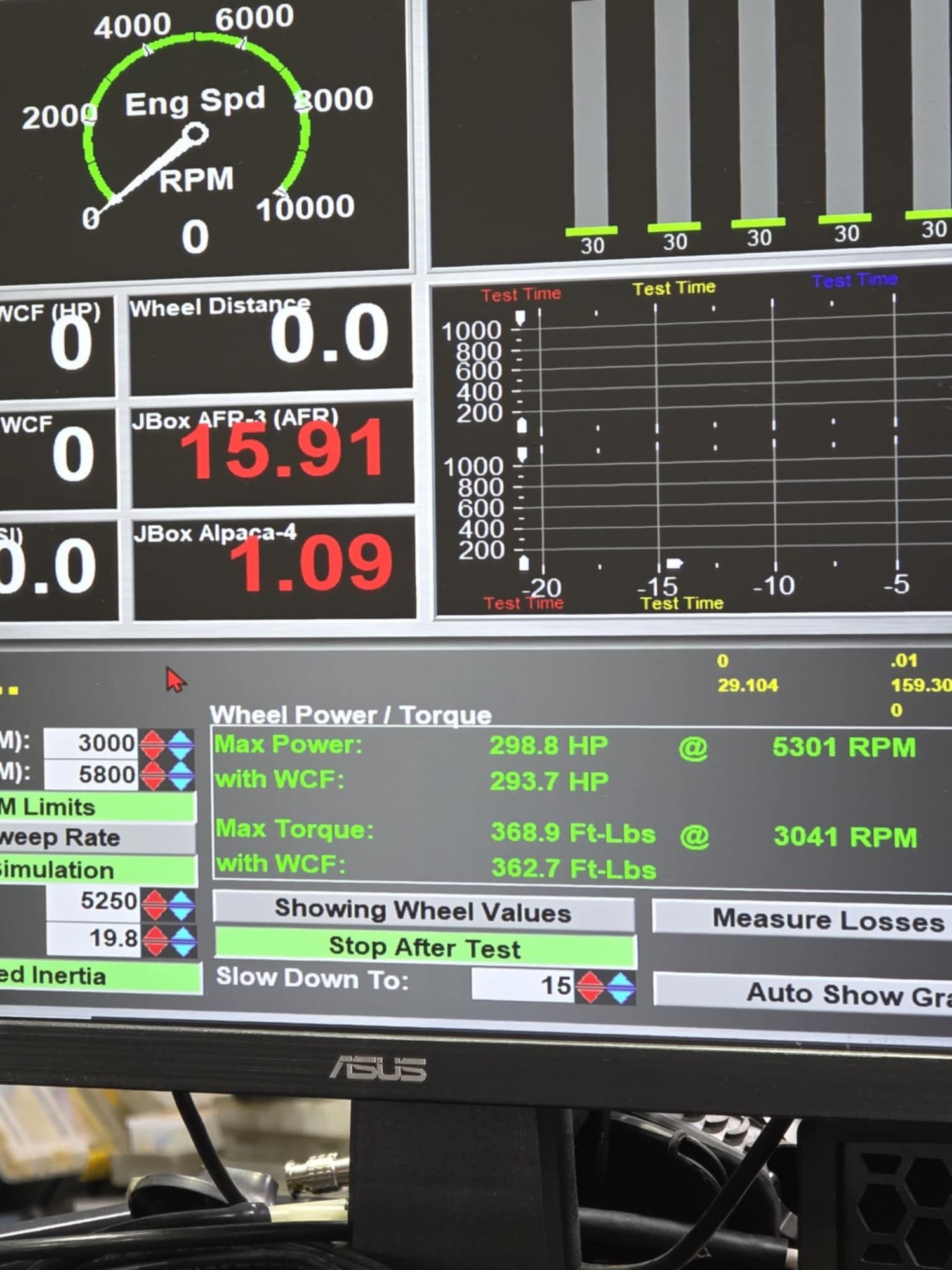 Literally been stated but for some reason Tom is the one that thinks I am judging on an open differential burnout length. I have run sub 2.00s 60' times with open differential too many times to count. This was literally a 0-60 stalling against the converter a bit, do you hear me burning tires, no. It was over 1 full second quicker with the dual plane and thorley tri-ys than it was with the Projection 4150 single plane and Hooker iron manifolds. Both the headers and dual plane decreased the timed acceleration times as well. It is even quicker now that I have ditched the Proflow ECM and went to a P59 that I tuned on a speed density custom operating system. The larger 454 air cleaner and ducting I put on it stopped the intake vacuum buildup at higher rpm as well and roughly halfed the WOT vacuum I saw in this pull. That added power as well. The tuned P59 and 454 air cleaner are literally the only changes I have not had it back on the dyno for.