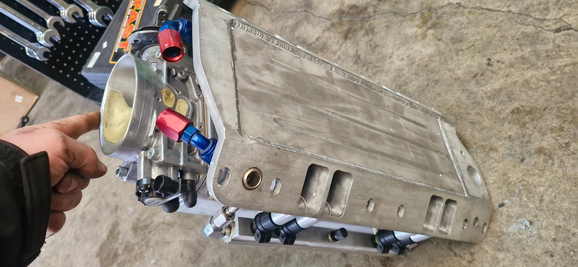 Very cool intake, looks like a lt1 or ramjet 502 throttle body but no iac passage.