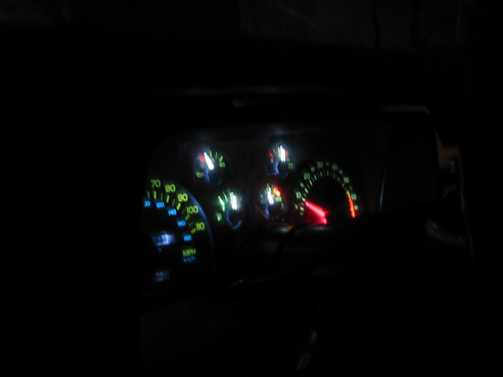 I finially took some pictures of his gauges. I used around 56-1000mcd red led's. It looks pretty good in person, but here are some pics.