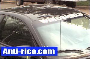 What saying on windshield?