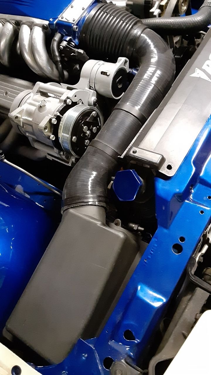 Being an 87, it is a MAF car and the MAf is in between the clamps of the not quite factory A/C compressor that doesn't look fully out of place..