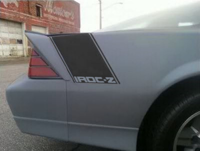 I don't know what font was originally used, when I redid it I grabbed a copy of the original IROC-Z decal that I found online and just scaled/slanted the letters to fit the original space, so it can't be anything besides the actual original font.
