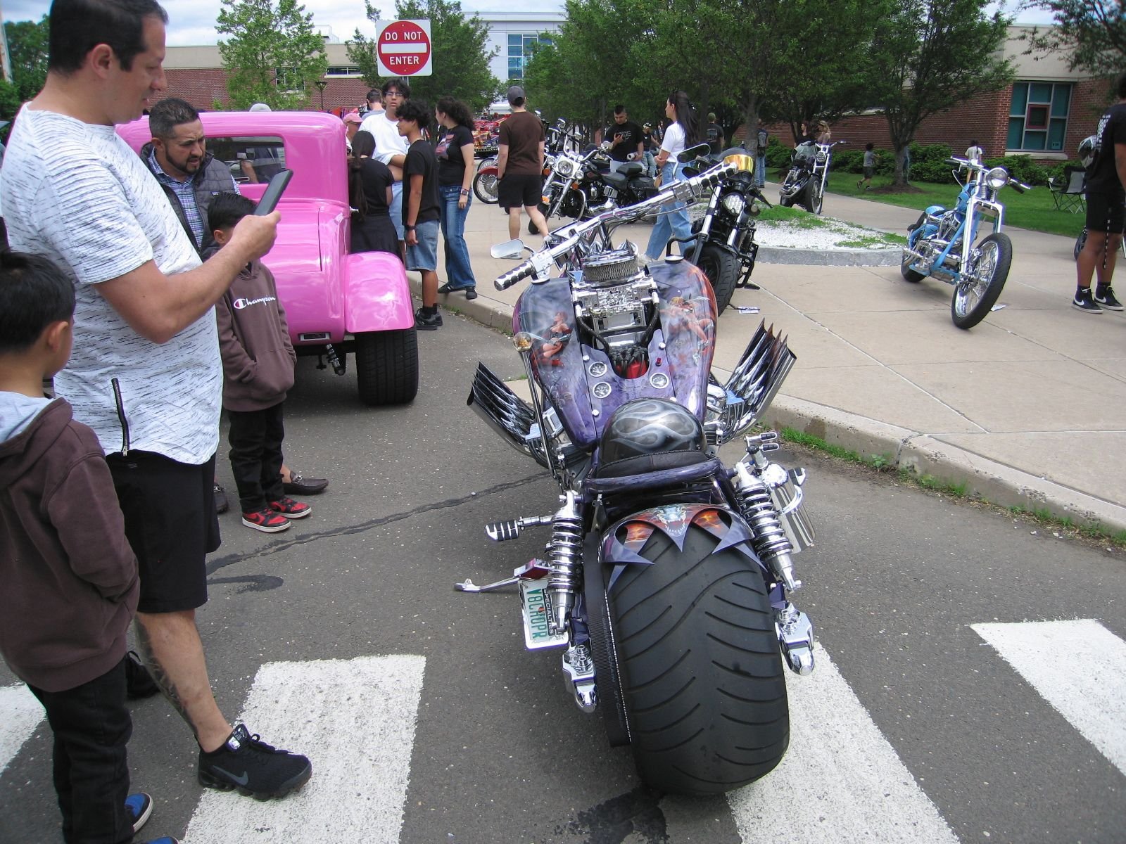 This one's for you Mike! I do the 1st half of the show with the hood open and the second with it closed. As much time as I have put into my engine detail and I want it seen, I do agree with you about the styling looks better with it down. So this is Mike's compromise! When I shut my hood I was talking to the guy who owned the 76 Nova next to me and he asked if I was leaving. I told him no and I said I wanted to display the car like it was on the showroom floor.