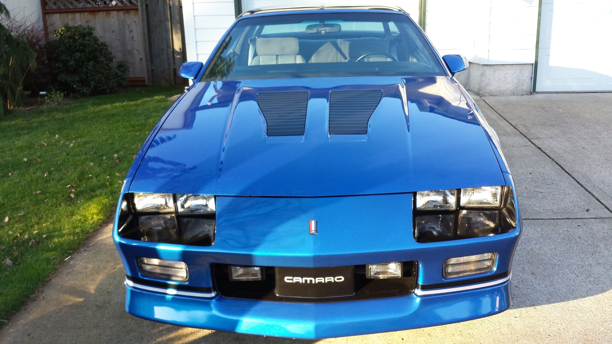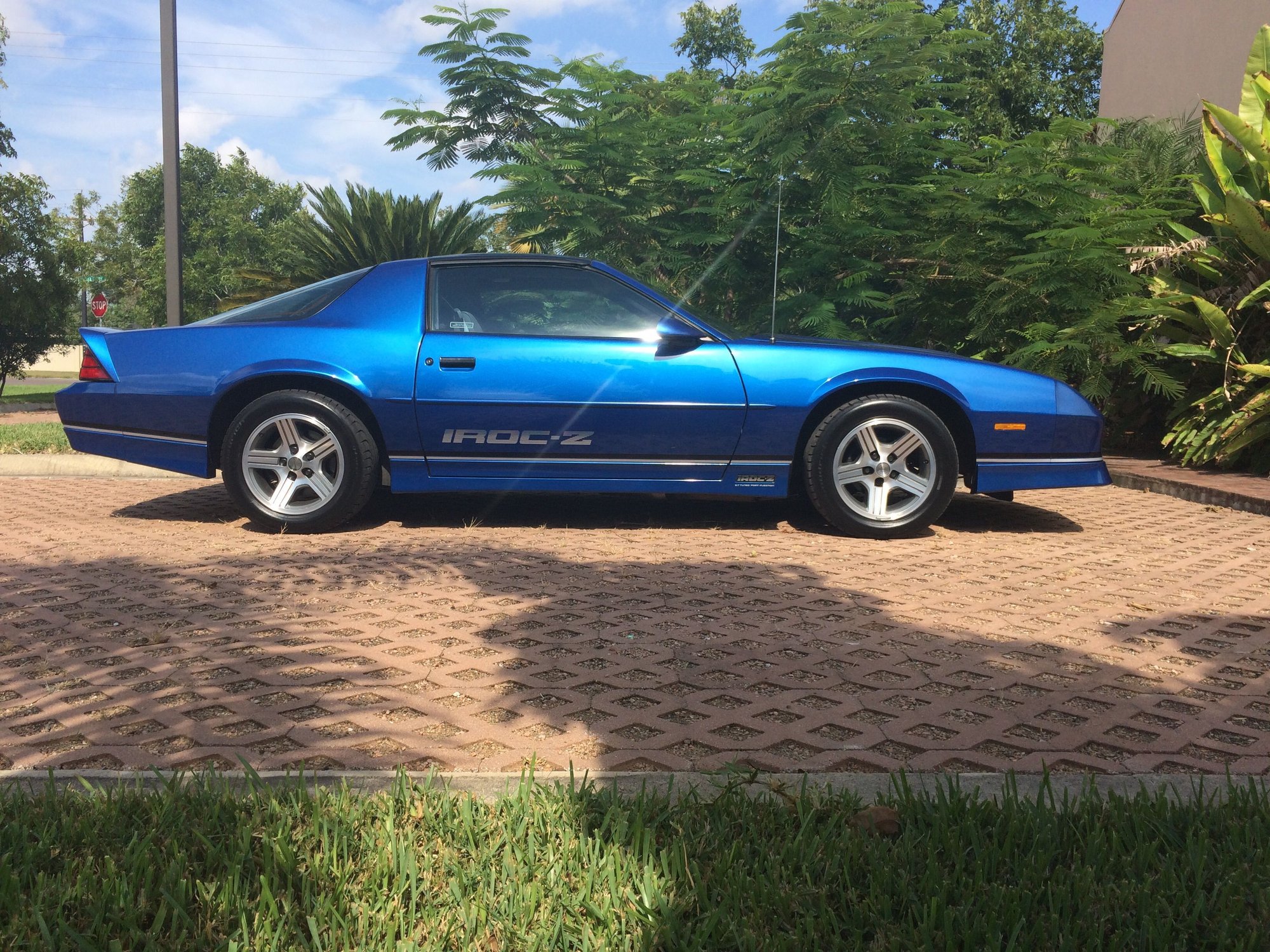 This is my all original 1989 IROC. This is a 14,400 mile car with its original interior and bright blue paint which still look factory fresh. The car has a numbers matching L98, 700 r4 transmission and 2.77 gears. The car boasts its original engine components including original alternator, AC compressor, plugs, wires and radiator hoses. Here are a few pics.