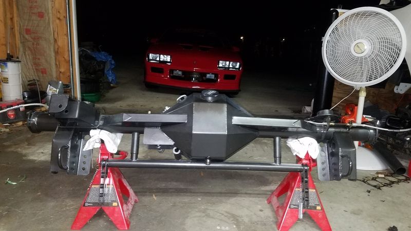 Rear differential: 9" Burkhardt chassis 4130 chromoly housing, street setup has a Strange nodular center section that currently has 3.25 gears, 31 spline Strange axles, Eaton Truetrac differential. Drag setup uses a Yukon aluminum center, strange 40 spline spool, Mark Williams gun drilled 40 spline axles, 4.10 gears, PTC chromoly 3" driveshaft, sonnax billet yoke.