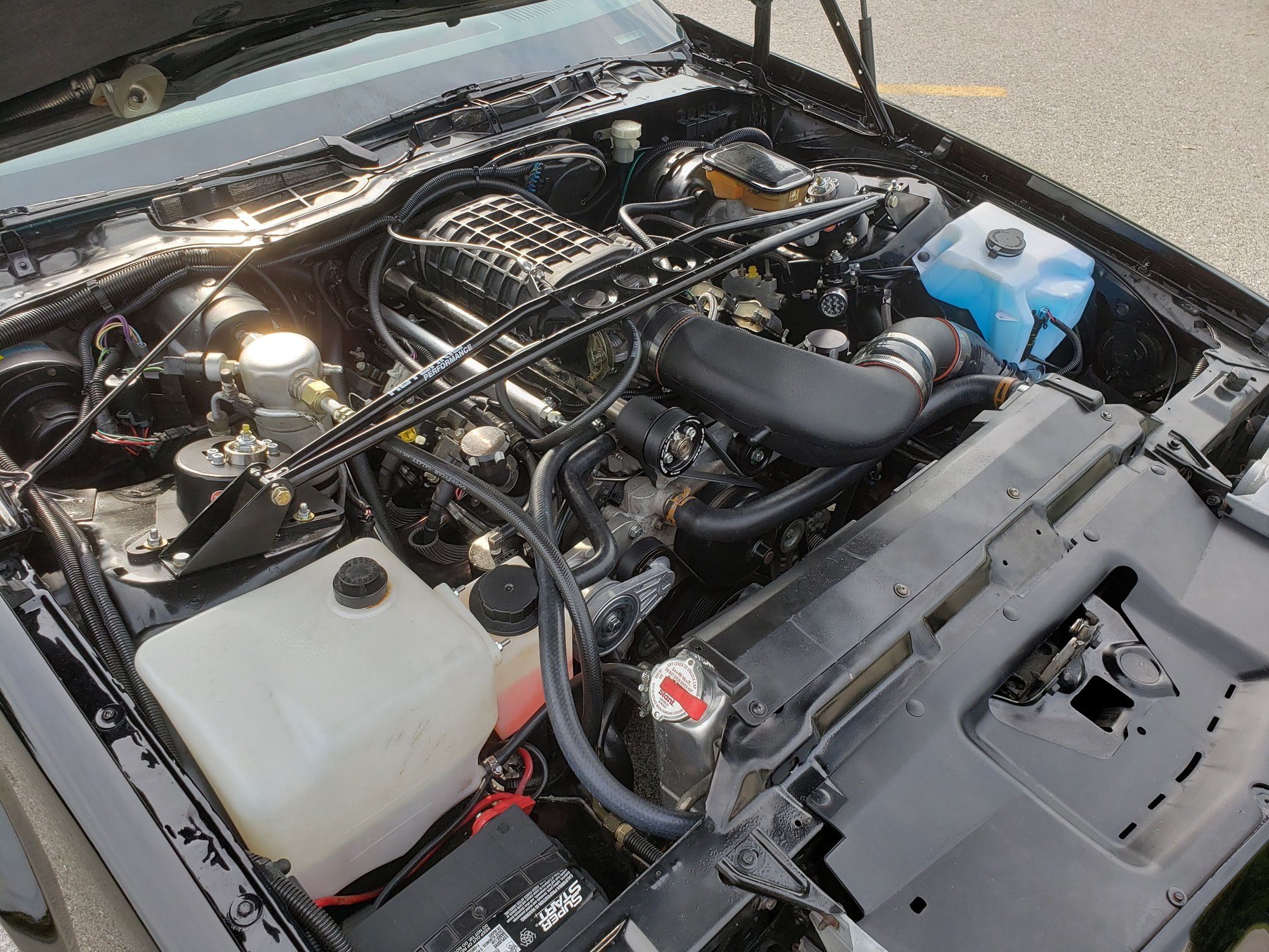 One of the previous owners had taken out the original 5.0L motor and replaced it with a 5.7L TPI out of a 91 Corvette. The 4 speed auto was still in it and a "truck cam" had been installed. The car was super torquey down low but was a dog up top. I bought new wheels and fitted them with 245/285 tires. The previous owner had also put lower control arms and an upgraded sway bar on the car with Bilstein shocks.