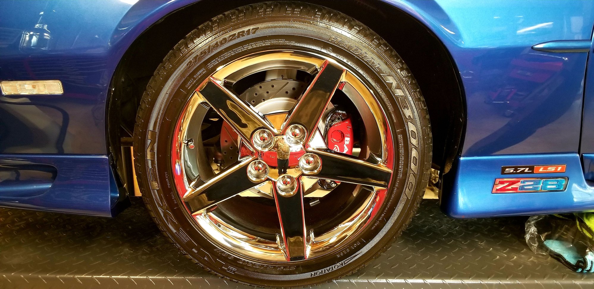 The wheels are 17 X 9.5 C6 wheels and Firestone Firehawk Indy 500 Tires. (One picture below has my old Nexen Tires)
