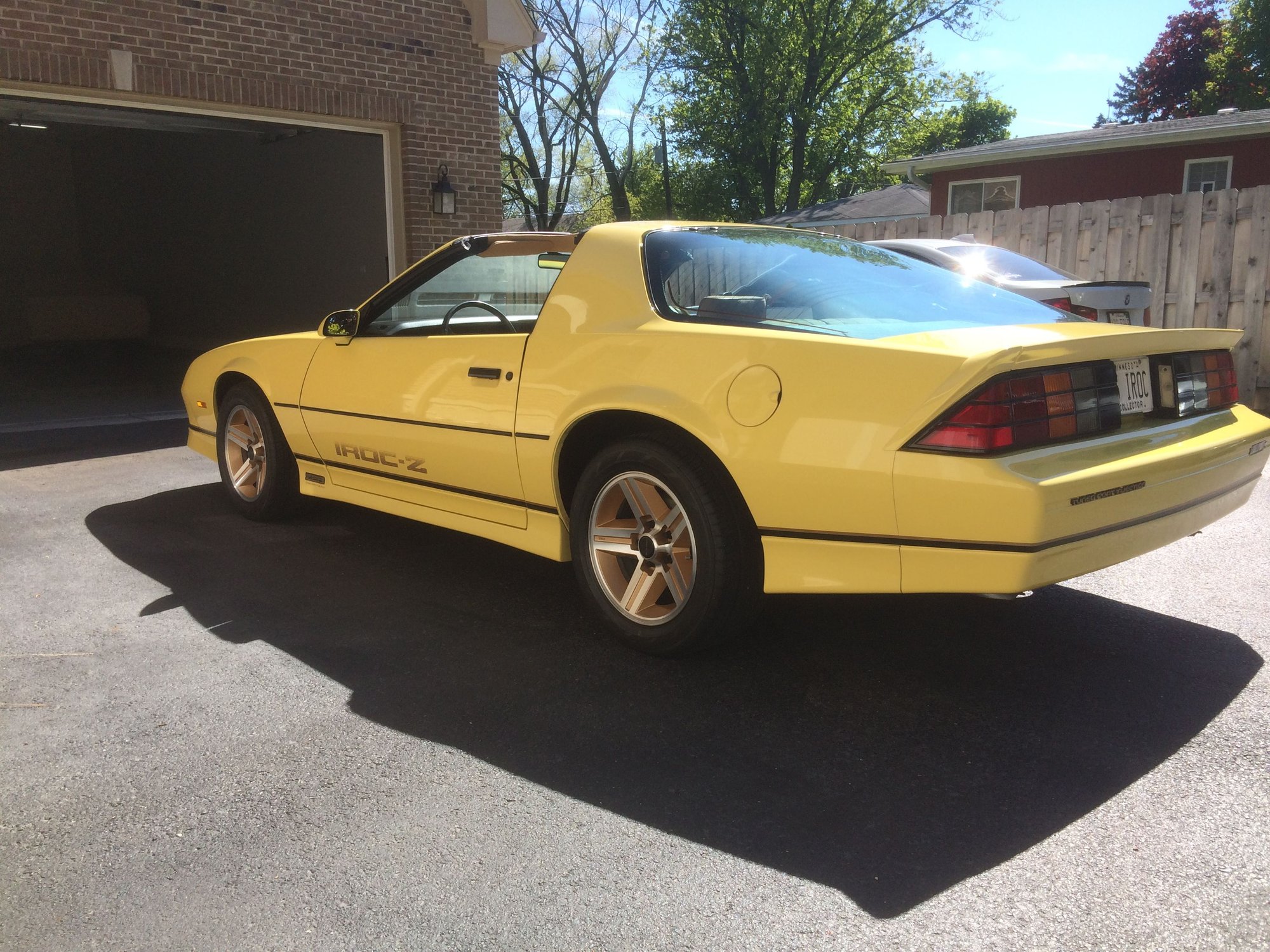 My car was a trade in at a Minnesota Buick dealer. I spoke to all the 3 previous owners, they all knew each other. The original owner's father owned a track where the IROC Series raced. After going to a few races, she WANTED a yellow IROC and that's what she got.