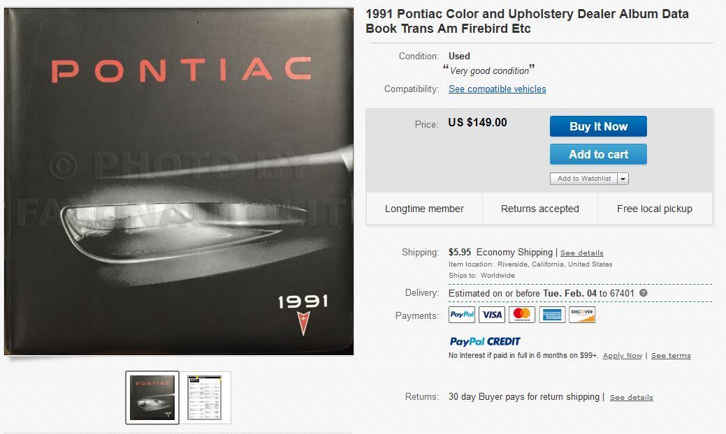 Not my slides... That was a batch of stuff on Ebay. It was 99% full Pontiac line-up, and the seller was not giving it away. I'm not sure if that lot sold or not. The 1991 Pontiac full line-up binder is pretty awesome in it's own right too, but I gotta be careful about blowing hobby funds on documentation. I've got a ton of 91 Firebird promo stuff already, and it has limited utility.