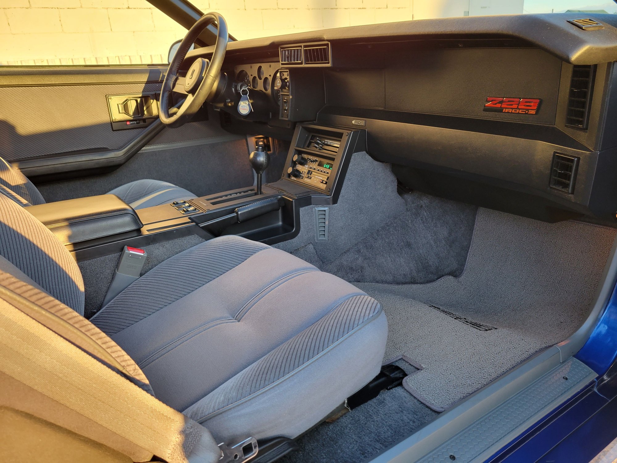 My car is a 1986 IROC-Z, and currently sits with 19,322 actual miles. It is all original, except for the tires, battery, and Flowmaster cat back exhaust. I had the chrome Flowmaster tail pipes removed and replaced with factory style slash cut tips, so at least it appears stock. All of the paint is original.