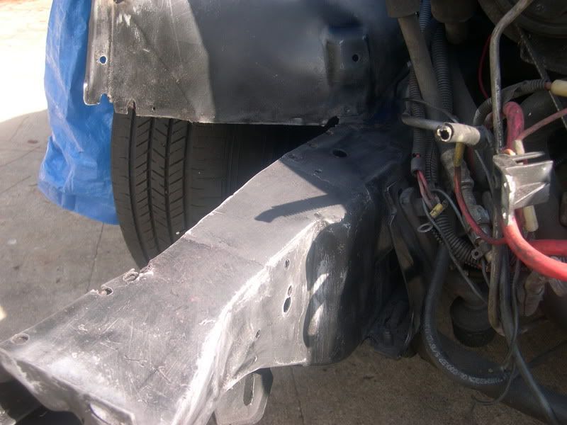 Removed the radiator support today and dolly'd out some of the warped metal...its getting straighter