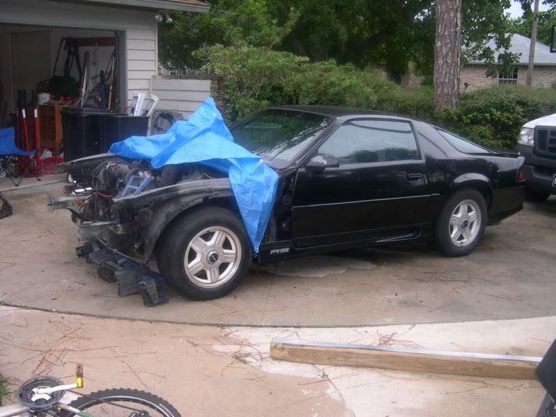 Well i finally have another third gen...camaro number 5 haha. Anyway i picked this little guy up for 600$. Runs and drives surprisingly well. I went over the car before i grabbed ti looking for the usual rust...floor, bottom of the doors, hatch, around the windshield...found nothing. However the car got hit pretty hard in the front virtually toasting the front part of the frame. Found a straight bird and hacked off the front of that and am currently having it sand blasted to remove the small amounts of surface rust from it. Anyway recently i pulled off the fenders and found alittle more damage. I dont think its anything to really worry about but w/e, i wanted some peoples opinions. Ive never built a tbi car...ive always been tpi..had my fair share with a cammed 92 and a 383 stroker..edelbrock heads and tpi system..they were fun but im looking for something new...so i picked up this guy. I figure i can just weld the cracks and be fine right? Then eventually get the front end welded in and stick it on a frame straightener and have the small crease by the battery tray pulled back straight..