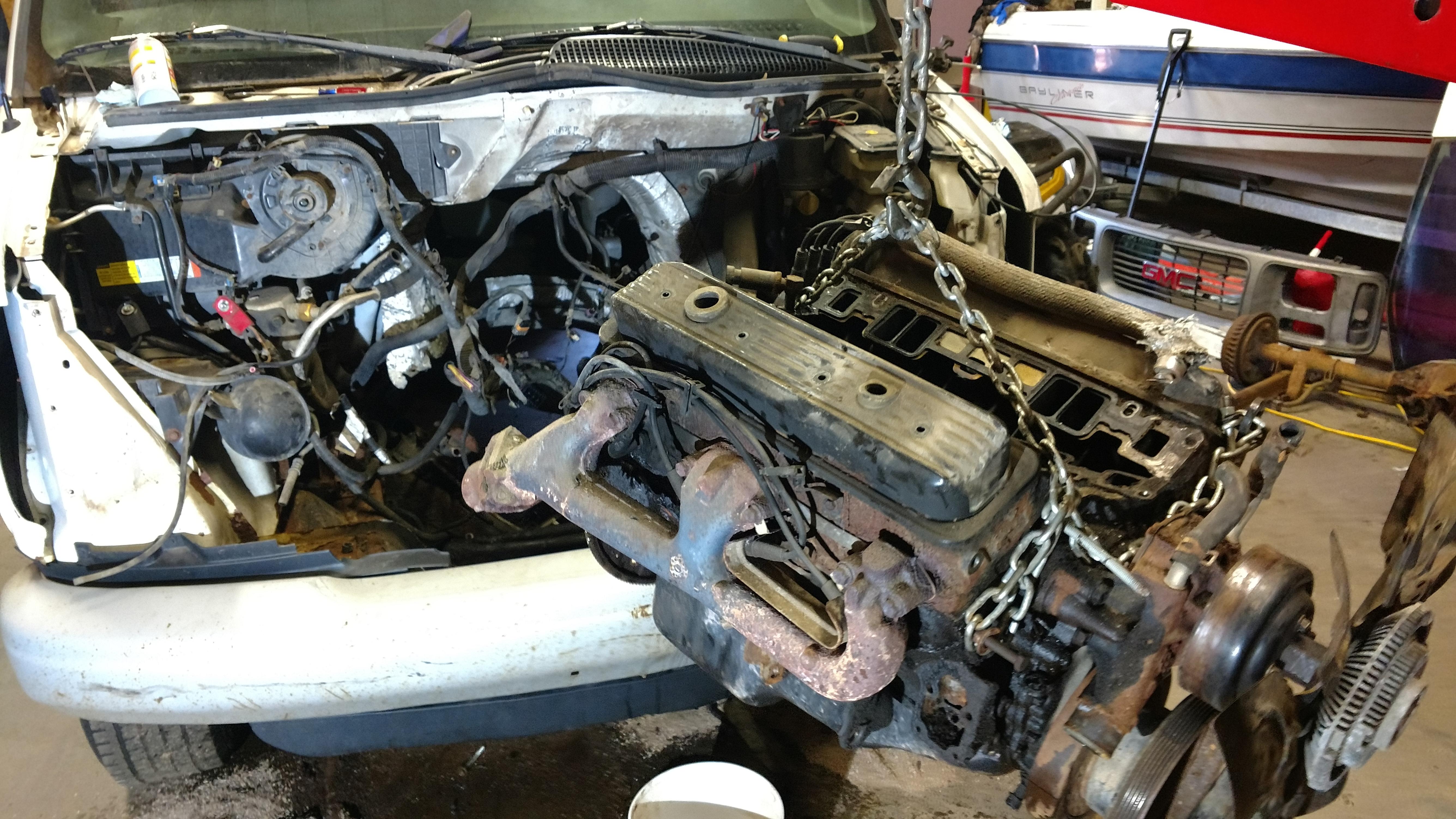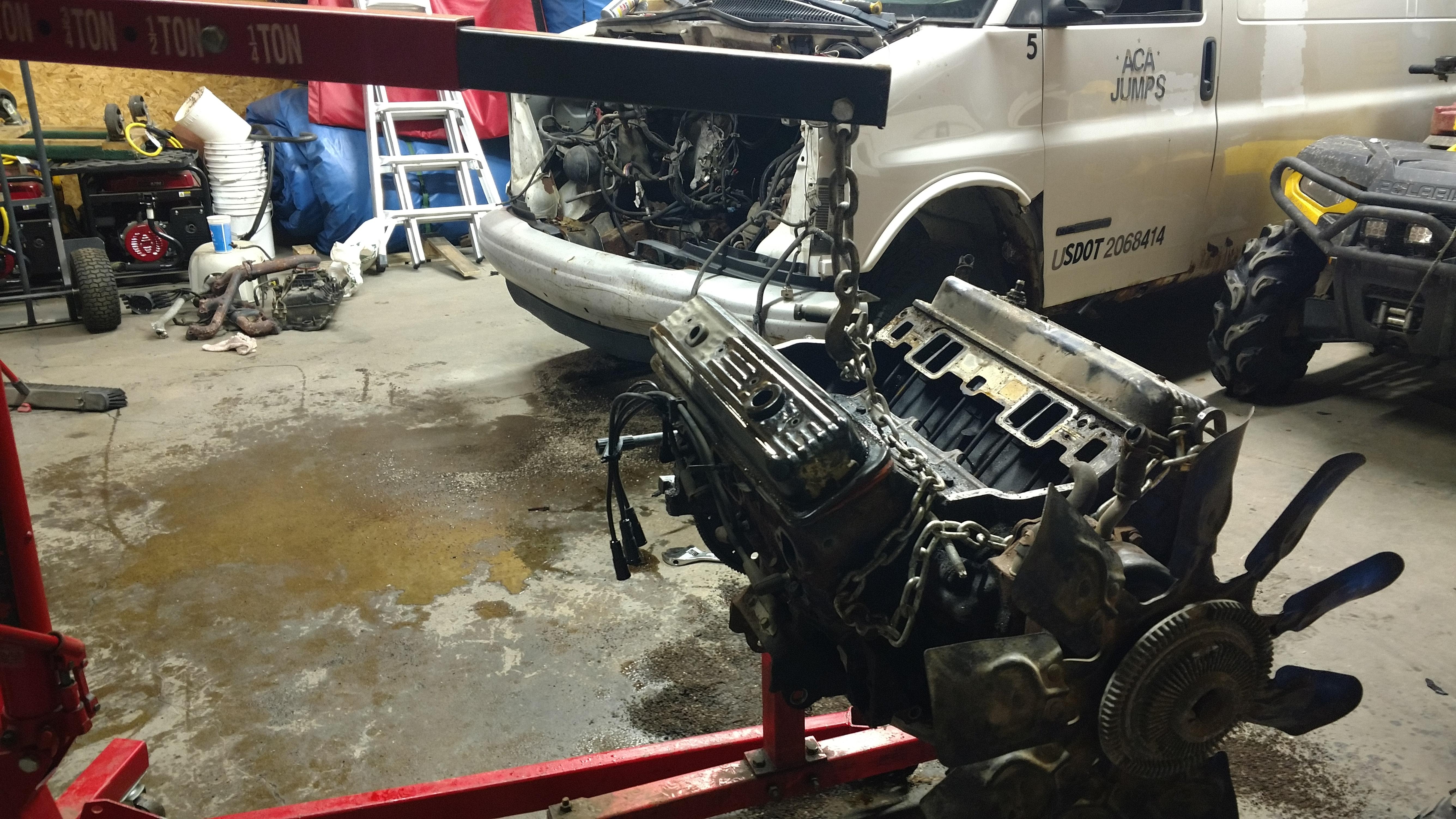 I'm getting a little impatient and one of our work vans had the frame rot away but the engine is still good. I pulled that out last weekend (2000 5.7 Vortec) and let me tell you, pulling an engine out of a snub nose van is not what I call a good time. But in the end I get a free engine and I'm going to tear it down give it a good cleaning and some fresh gaskets then that will be the heart of the Firebird as I accumulate parts for my 400.