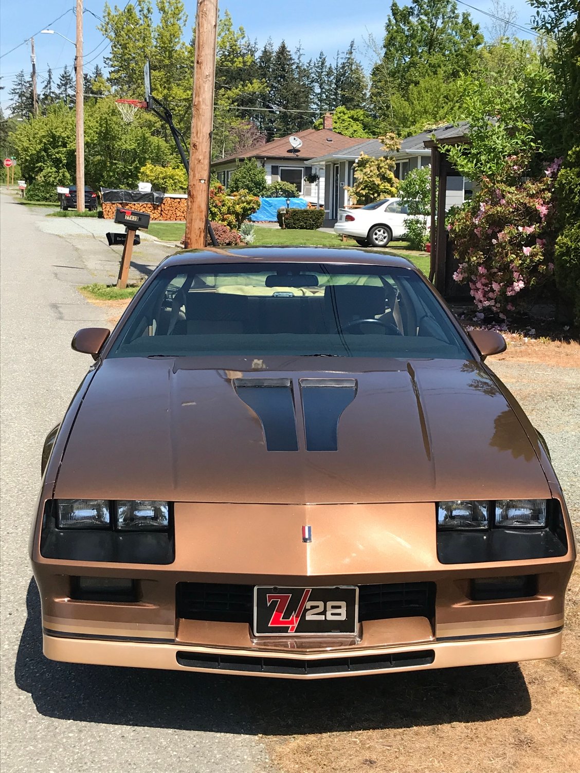 I have a '83 Z28 in Dark Brown (67) with original paint and brown stripe. The "Brown" Z28 color scheme was only available on White and Brown Z28s in '83. Cross-Fire still runs great. The car is mostly original and unmolested. My mom bought the car in 1986. Sold it to my sister in 2007. Sister sold it to me in 2015. Trying to keep everything in working order and original.