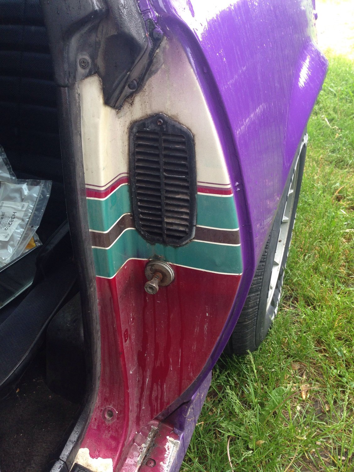 I doubt the car is a Player's car. The paint schemes were usually simple and clean. Also, the body plug in the door jamb should be black, so the fact that it's painted tells me a previous owner did an inexpensive paint job. The Player's cars weren't undercoated and the body plug was installed because a hole was drilled to apply undercoating.