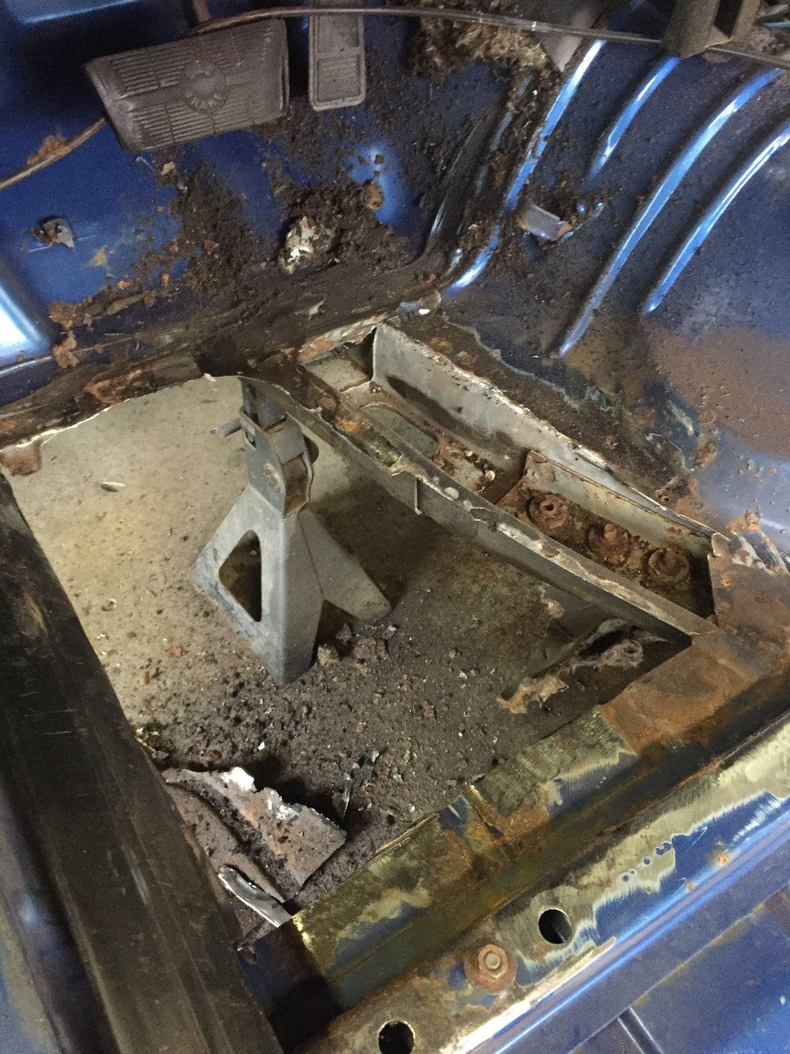 This is a picture of the drivers floor removed I'll post a pic of the patch piece so far. I am sure what I am doing is not perfect. Please feel free to give any advice.