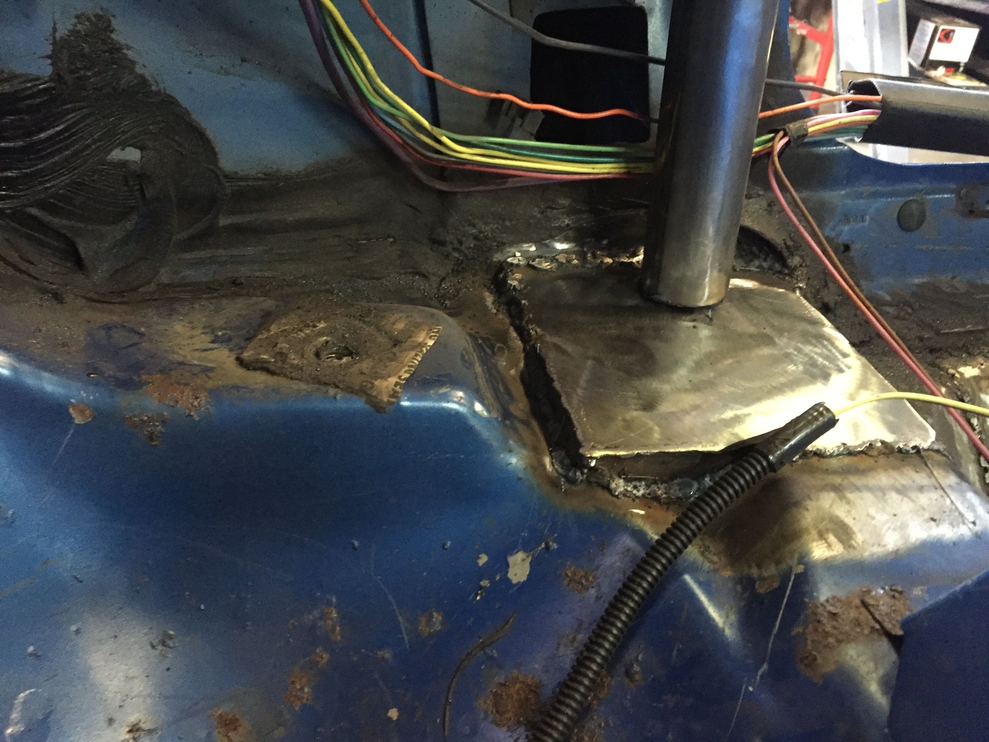 New sheet metal on drivers side floor pan. It's coming along slowly. I'm in no big rush. Thanks again to everyone for all the great information on the forum. I just hope my build can help someone.