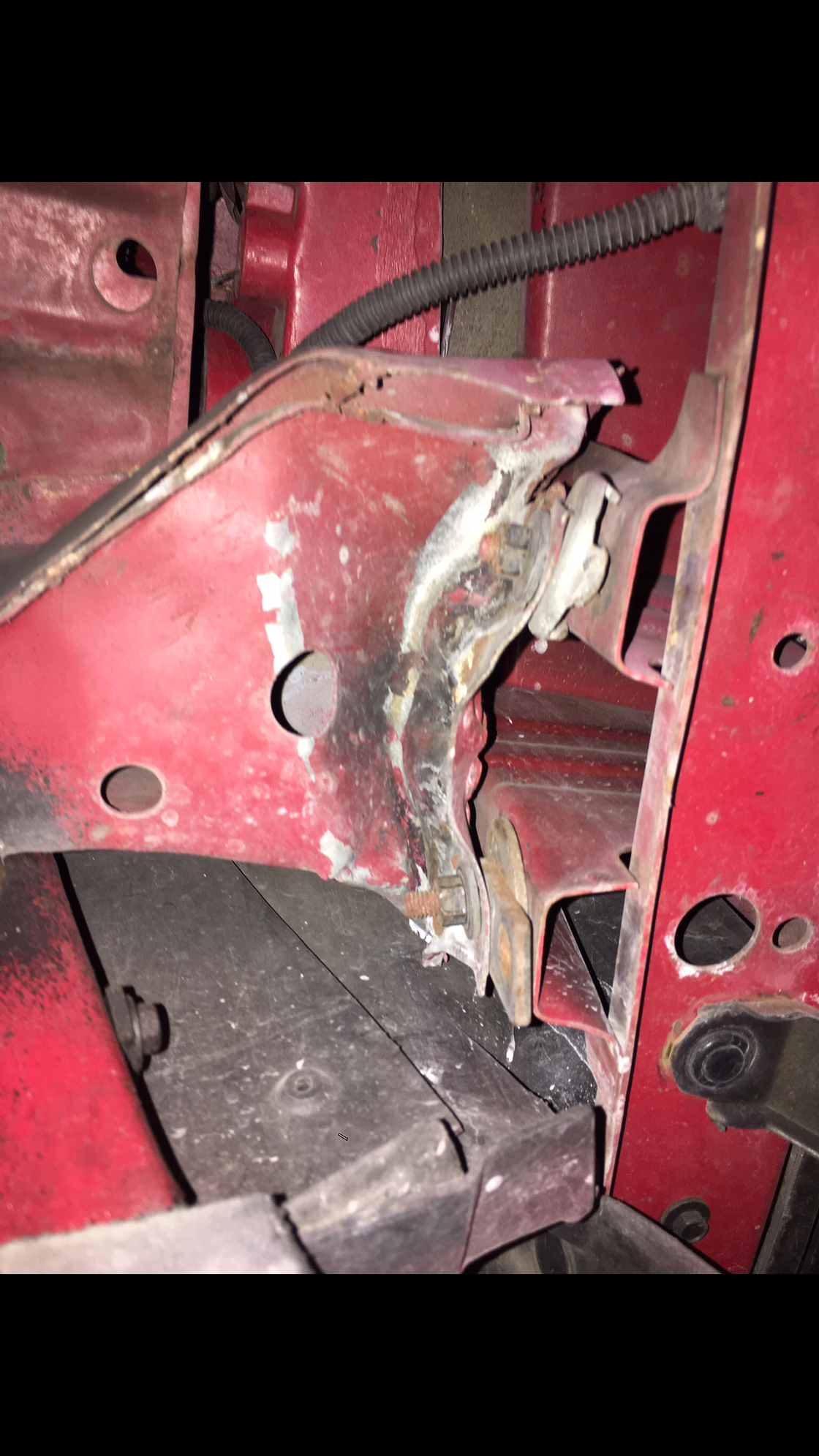 Somebody before me did a pretty good job of somehow fitting out the frame mount location and it looks pretty good on the outside but if you look from where the front cover meets the side fenders, there no gap (as in almost smooshed) at the lower part of the seam and fine at the top.