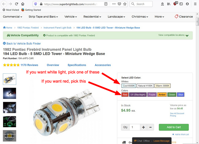 Thanks! What I like most about the LEDs is that all of the gauge faces are lit evenly. That alone is worth the upgrade. With stock bulbs some spots are bright and some are dim on the faces.