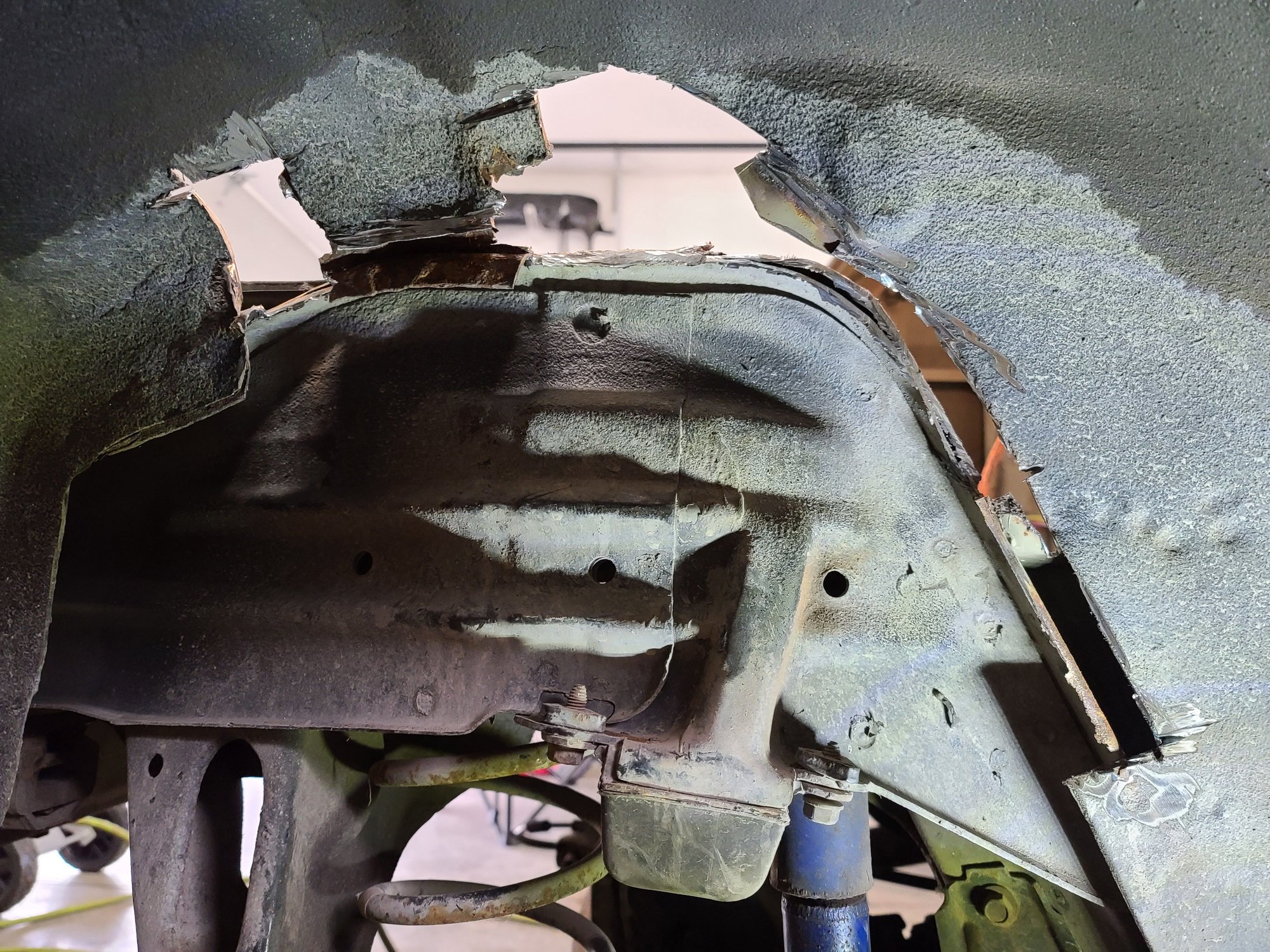 So here is the area, im just basically in the process of getting the rust out. I prefer to keep that brace in the center if i can clean it up enough. The thread link noted above pretty much covers the repair very nicely. Dave