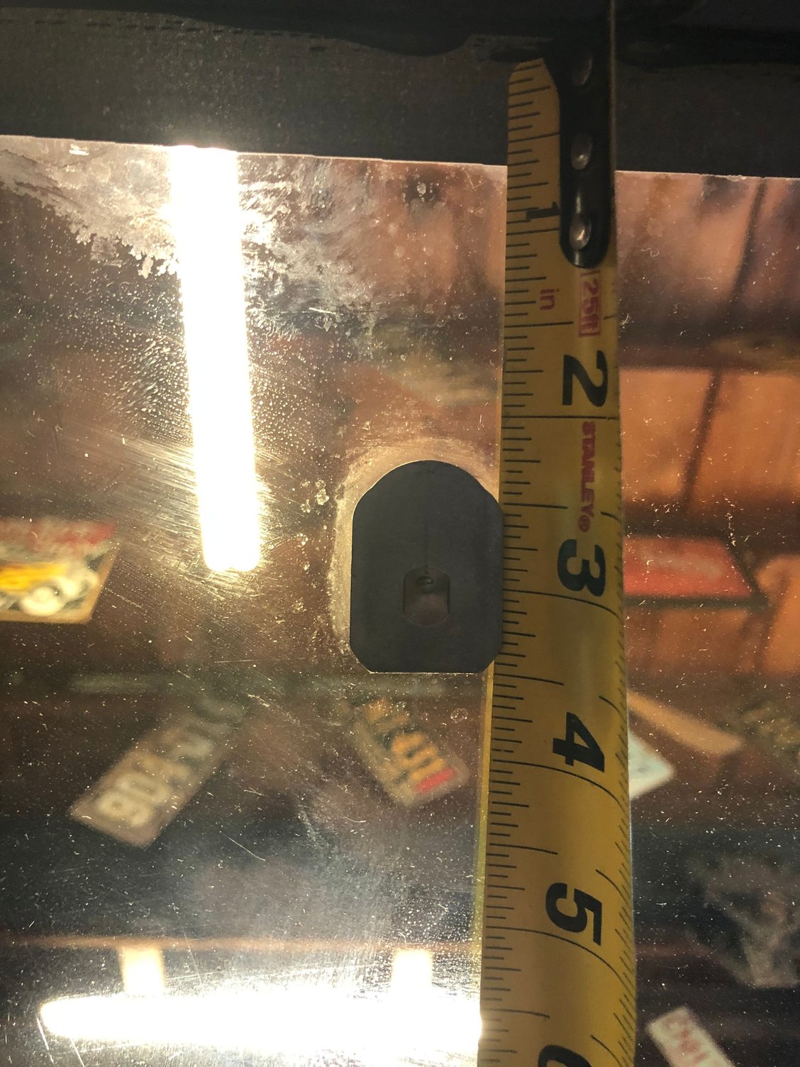 What is the general measurement from top of Windshield on a 1984 Trans Am to Attach the Rear View Mirror Base mounting plate?
