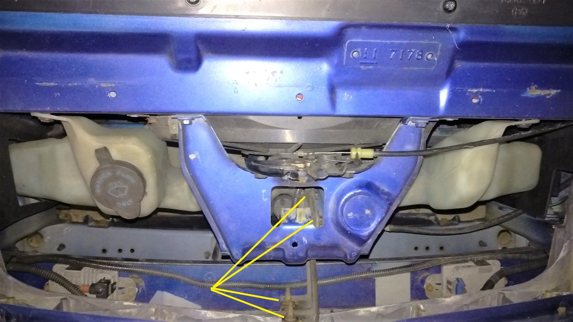 These are the best pics i have, but there are two 10mm nuts/bolts (yllw) in the center. Plus eight 10mm bolts (red) not visible here. Slightly loosen all these, just enough to adjust the bumper. These will allow you to move the center portion up/down and get the gap to your desire.
