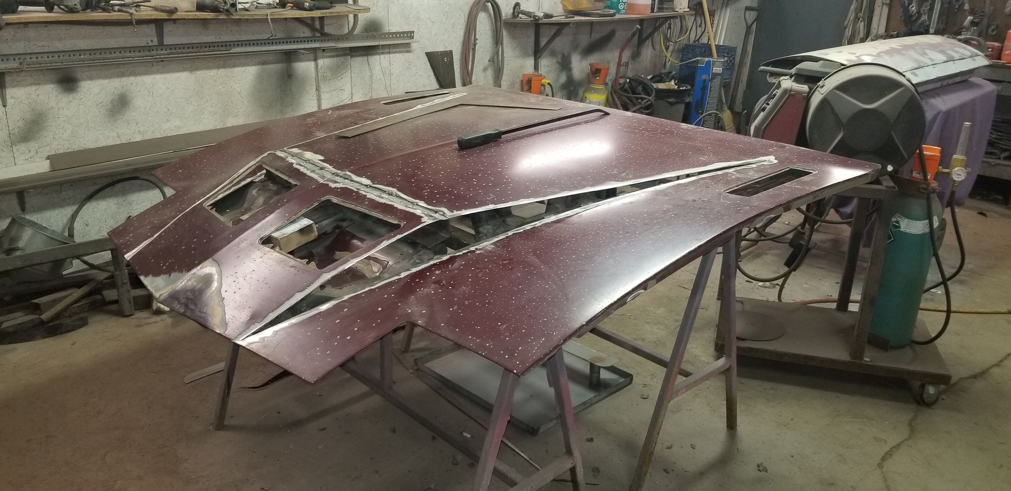 That is a really interesting modification to the hood, I have never seen one like it and it looks good. I bet someone could fab up a air box similar to the Camaro style to feed the air direct to the engine...