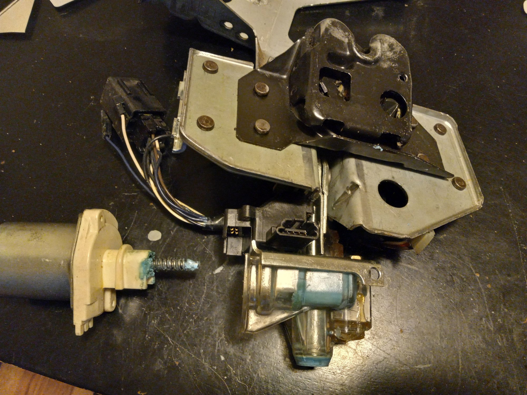 I have an 88 GTA. A few days ago I noticed about 2 inches of water in the hatch after a rainstorm. I figured the hatch wasn't sealed shut. I popped the hatch open and vacuumed out the water. At that point, the motor assembly wouldn't lower and the hatch stayed in the UP position. I could hear the motor buzzing, but the hatch wouldn't lower Well I took the whole unit apart and found that the nylon gear that lowers/raises the shaft is worn out. Since I was in there, I ordered a replacement housing, motor, and gear. But since I had it apart and was looking at it, I figured this could work as a manual override. I put the entire mechanism back together with the exception of the motor (housing back in place, along with the black plastic up/down switch), and used a flatblade screwdriver in the shaft where the motor would normally go and manually moved the gear, lowering/raising the shaft. Right now this is at the lowered position. I left the plastic switch in so that I'd hear the click and know when to stop. Theoretically, I'd think that if I bolted this back in to the car completely reassembled, with the exception of the motor, the latch would be ready for the hatch to be lowered down and lock in place as a manual lock?