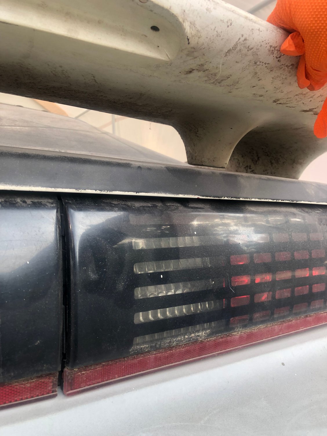 I think the hatch is it probably from a different car. I can see the outline where there would be 4 or so of those little spoiler mount brackets, but they’re all missing