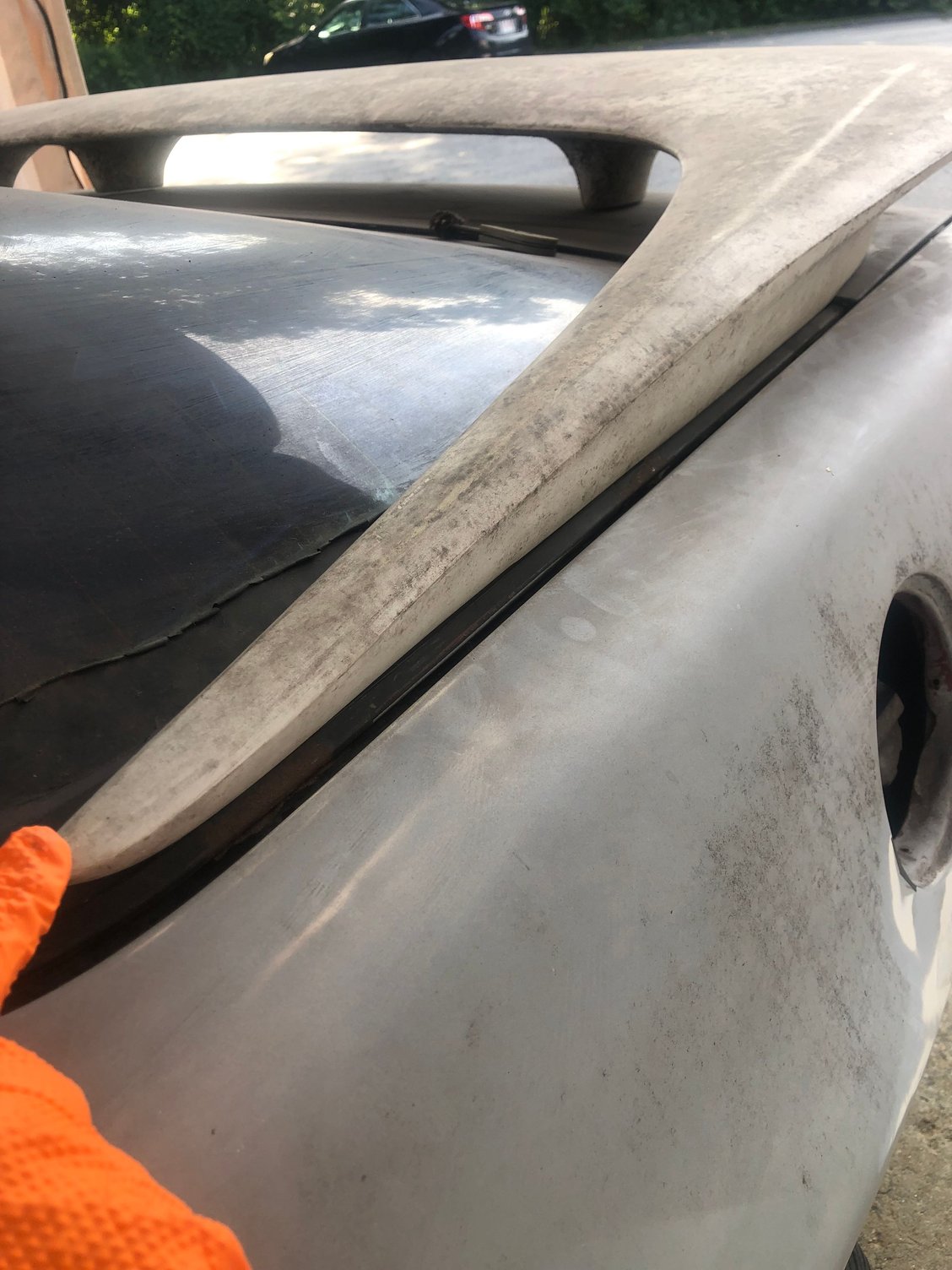 Can you tell, or do you know if the hatch has been replaced? Kind of sounds like it might've been, because even if someone removed the original spoiler, there wouldn't have been much point in removing the mounting trim from the edges of the hatch.