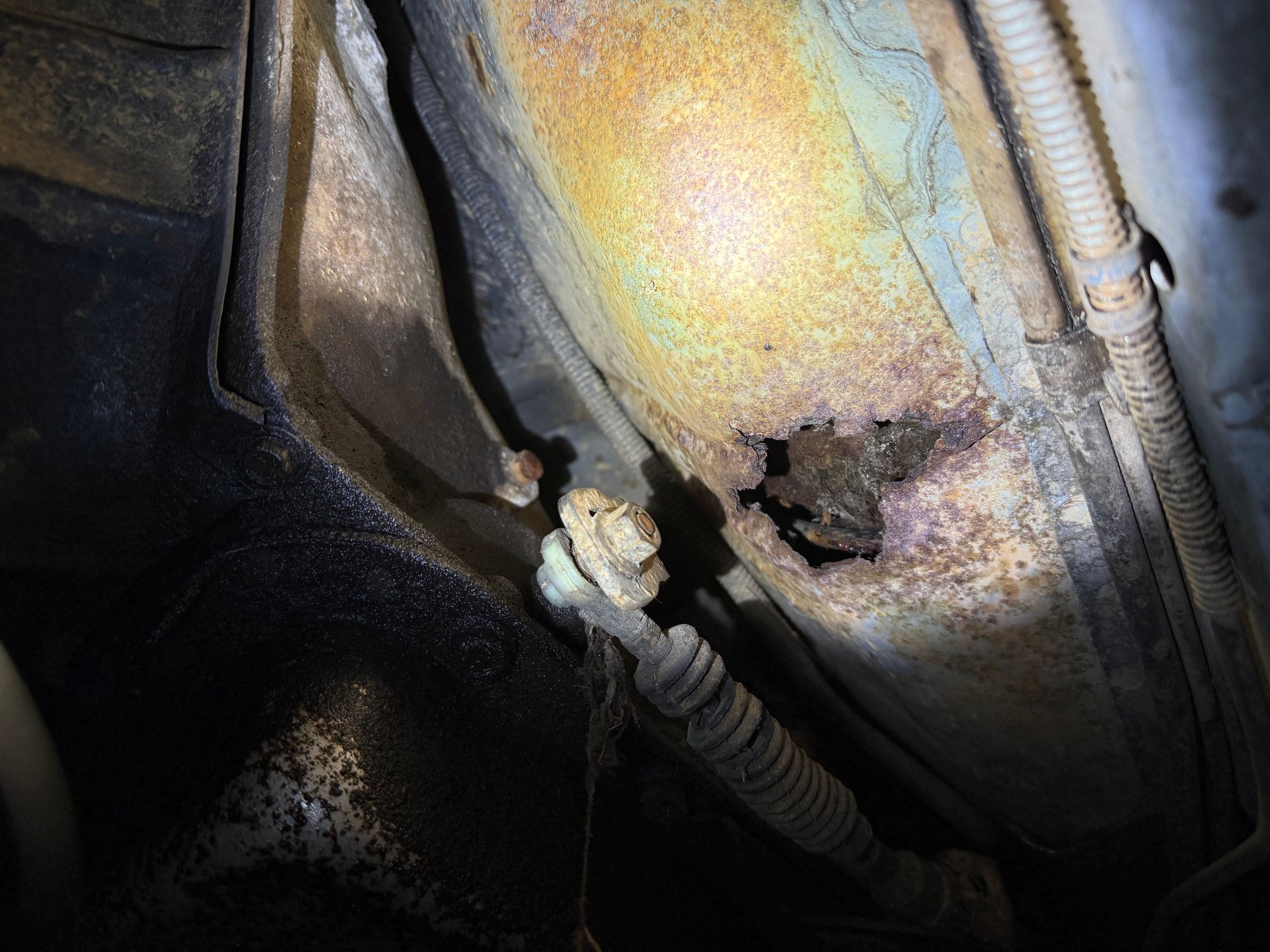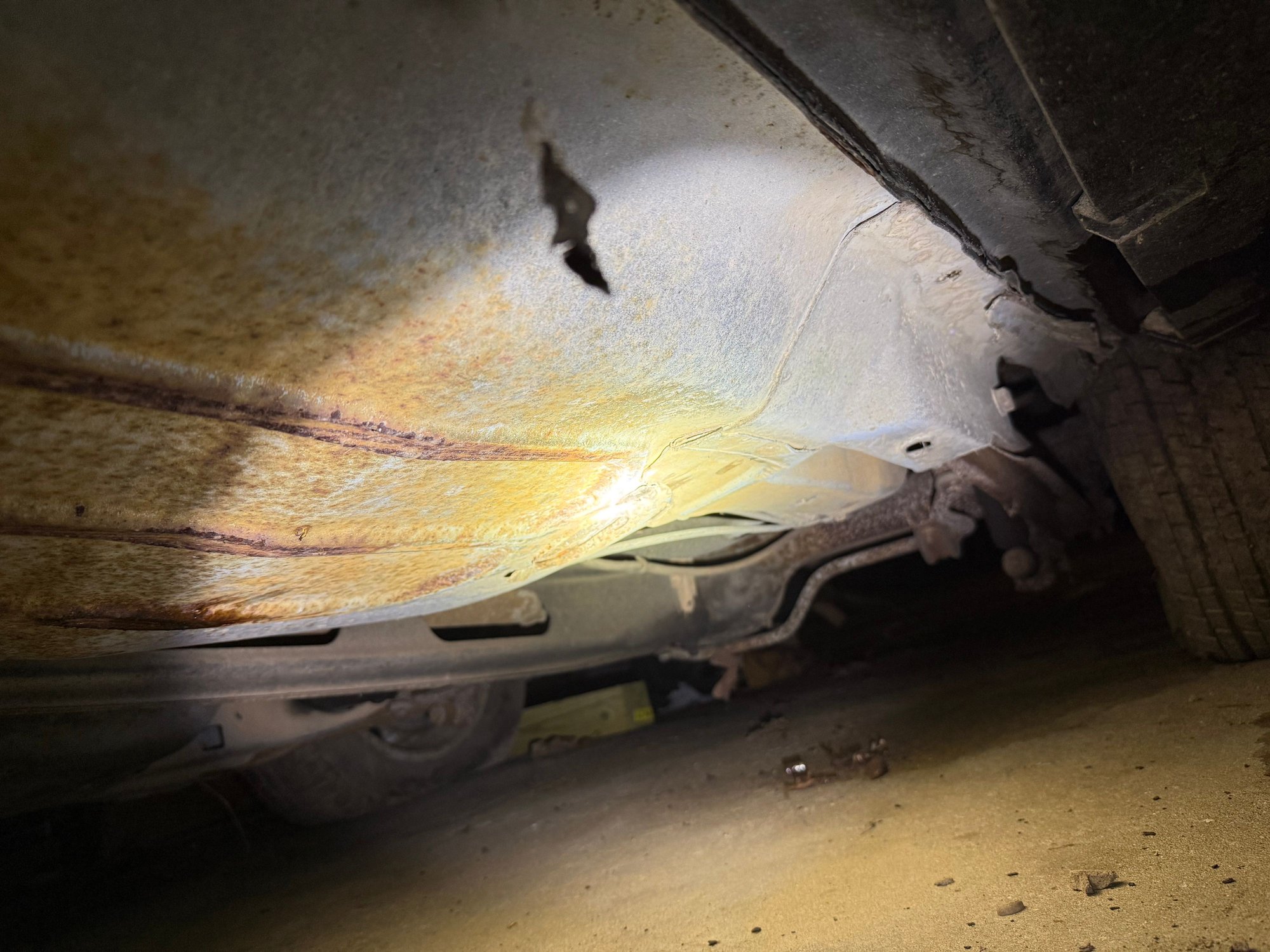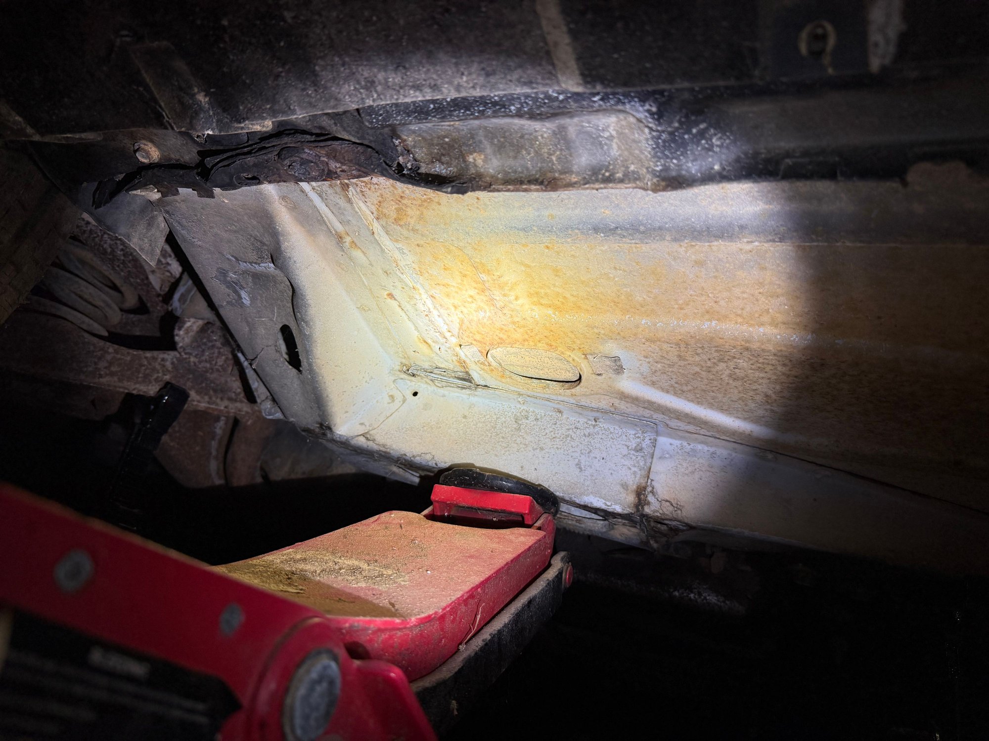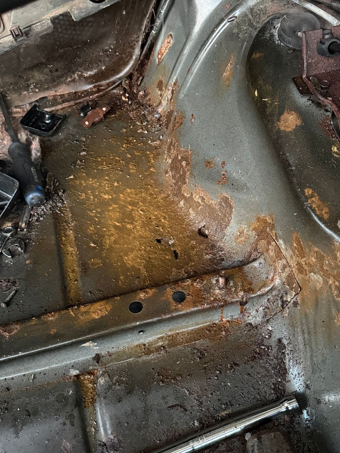 To my unexperienced eyes, this floor pan and underneath don’t look bad for sitting outside for 17 years.