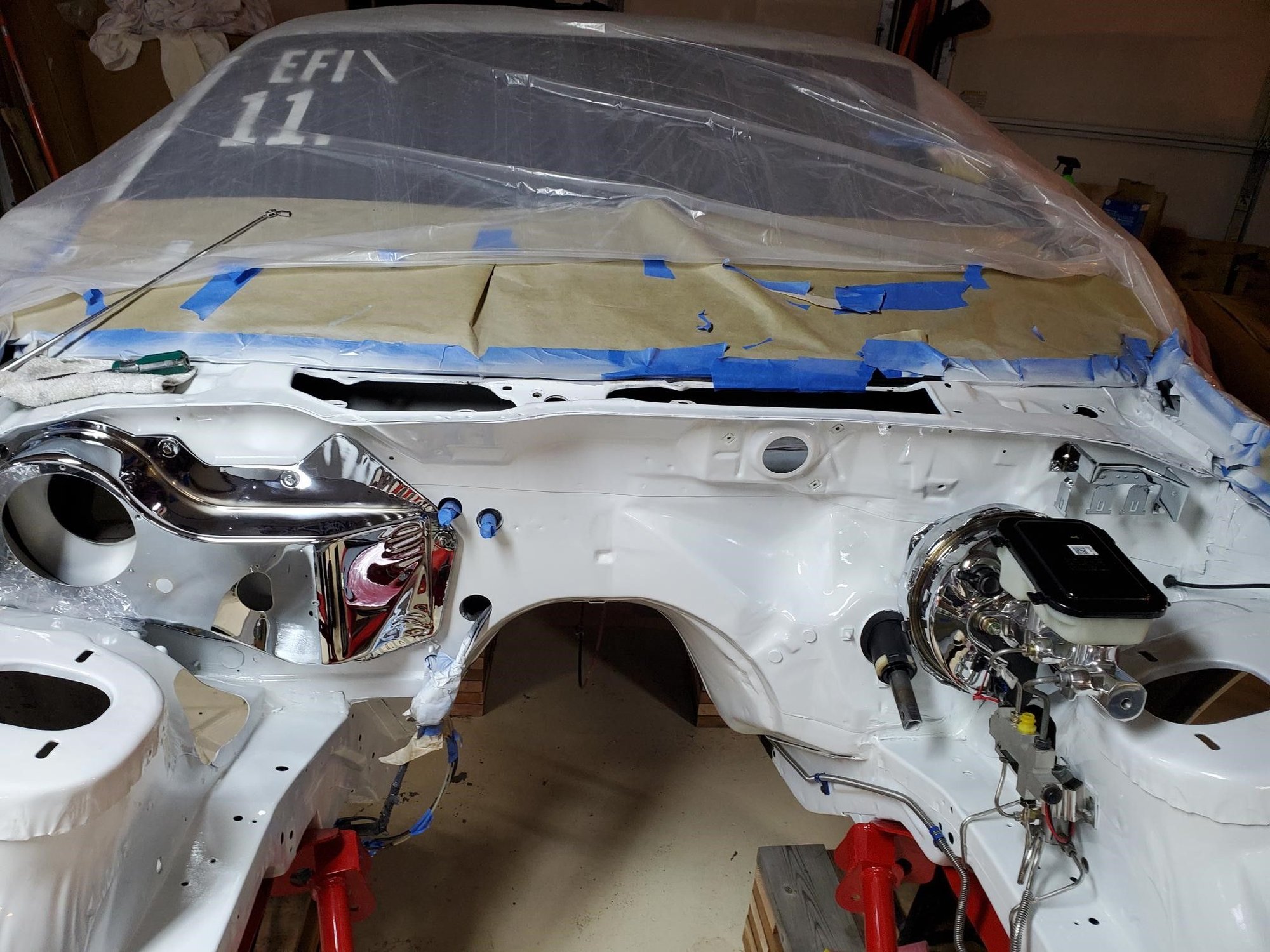 booster is back..all set to bolt in when the bay is finished.. they set it up..then took it down (master off of booster) All I do is bolt it in..and bleed it.100% all new SS brake lines going on the car..front to back