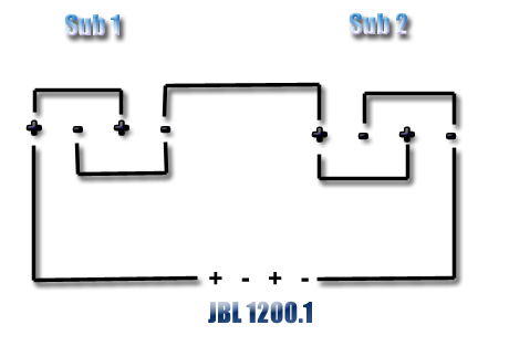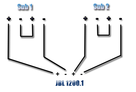 The JBL 1200.1 amp is a mono amp, so when hooking a sub into each "channel" you might as well be hooking them into the same terminals.