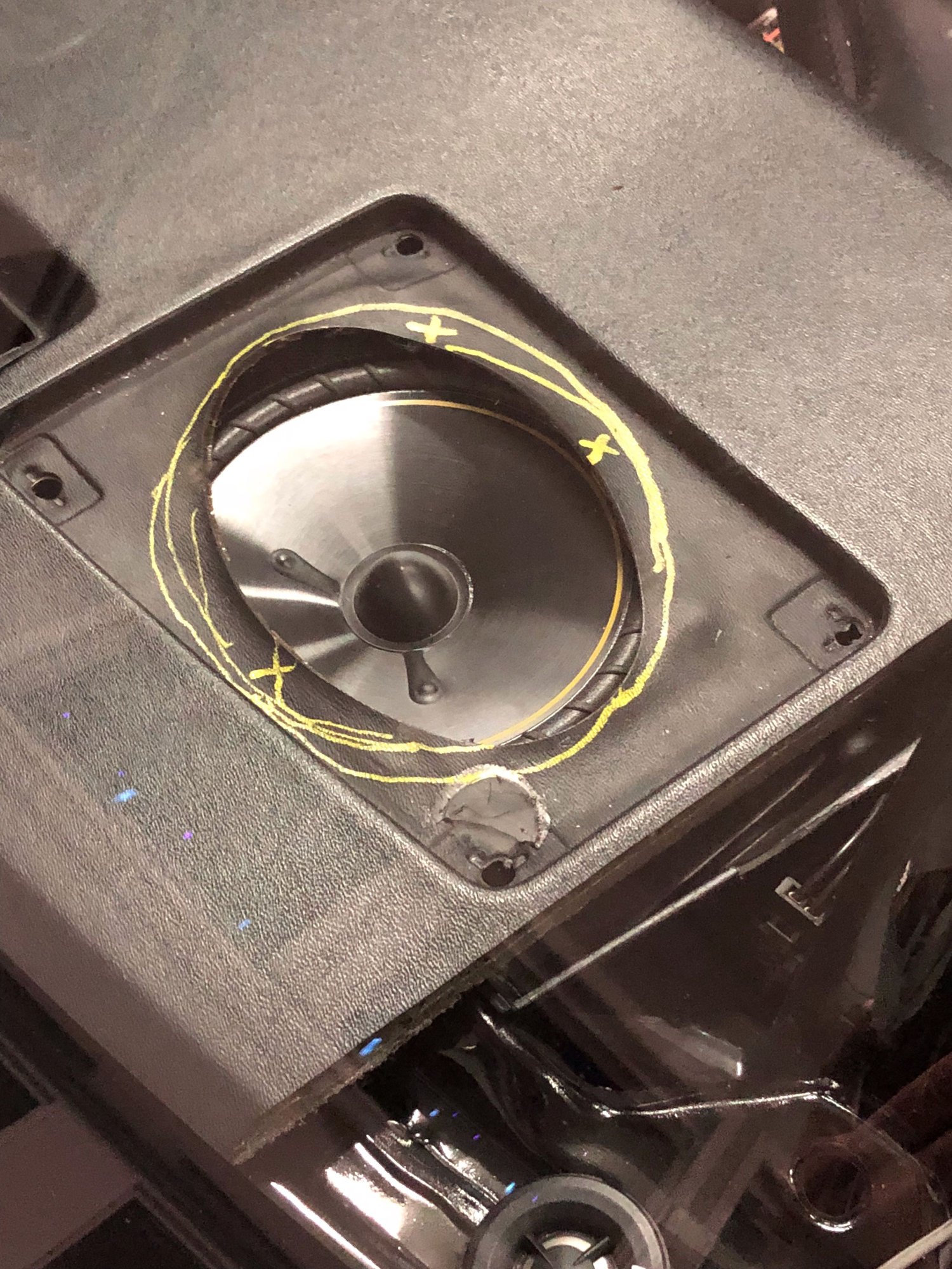 Couple pics to show some mods required. I am running 75 watts RMS to these, Kicker DS 6.5s and they sound great! Work under grills was performed to prevent speaker cones from hitting dash pad under full cone extension.