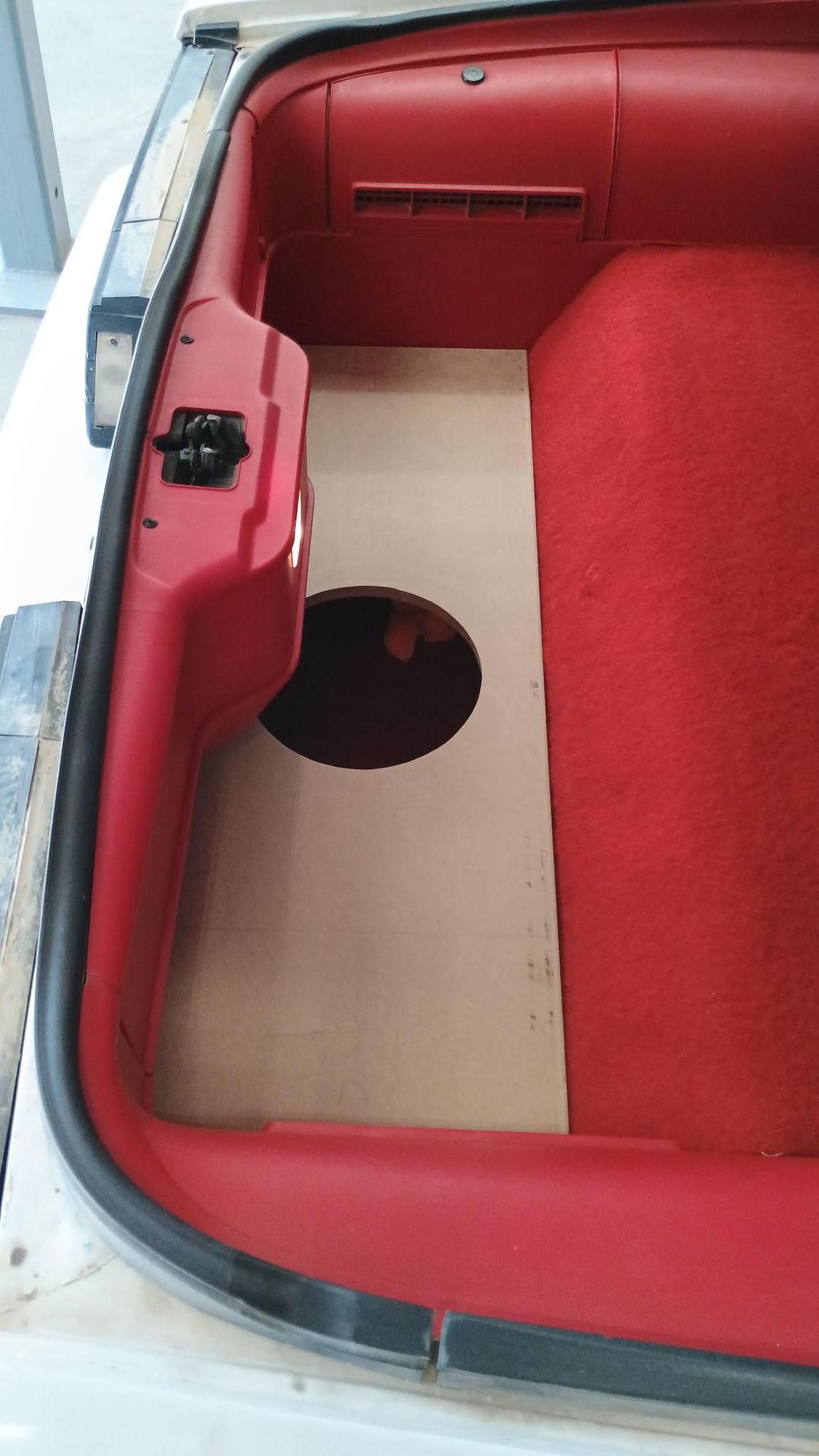 The trunk well subwoofer box. 1 cubic foot sealed minus driver displacement. The measurements in the post are excellent, the 18* cut is bang on the money.