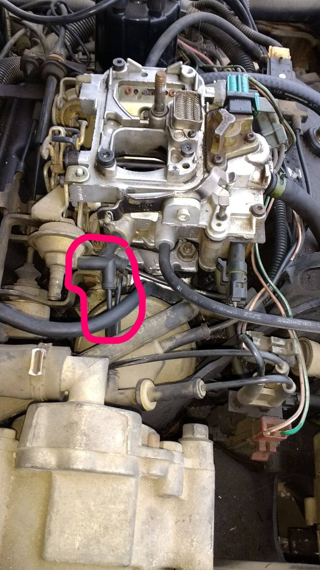 Let me start off by saying I know little to nothing about car specifics but I do trust in my ability to take things apart and put them back together. Just not a "car guy". Anyway, I've been working on rebuilding my Rochester E2SE (17084534) and in the process of removing the mounting nuts I managed to break the line that runs to the primary vacuum breaker assembly. The part that I happened to break is part of a vacuum line "harness" and I am clueless as to where to find a replacement or what to even search for. I've included a picture with the part of the line that i broke circled. any help would be greatly appreciated!