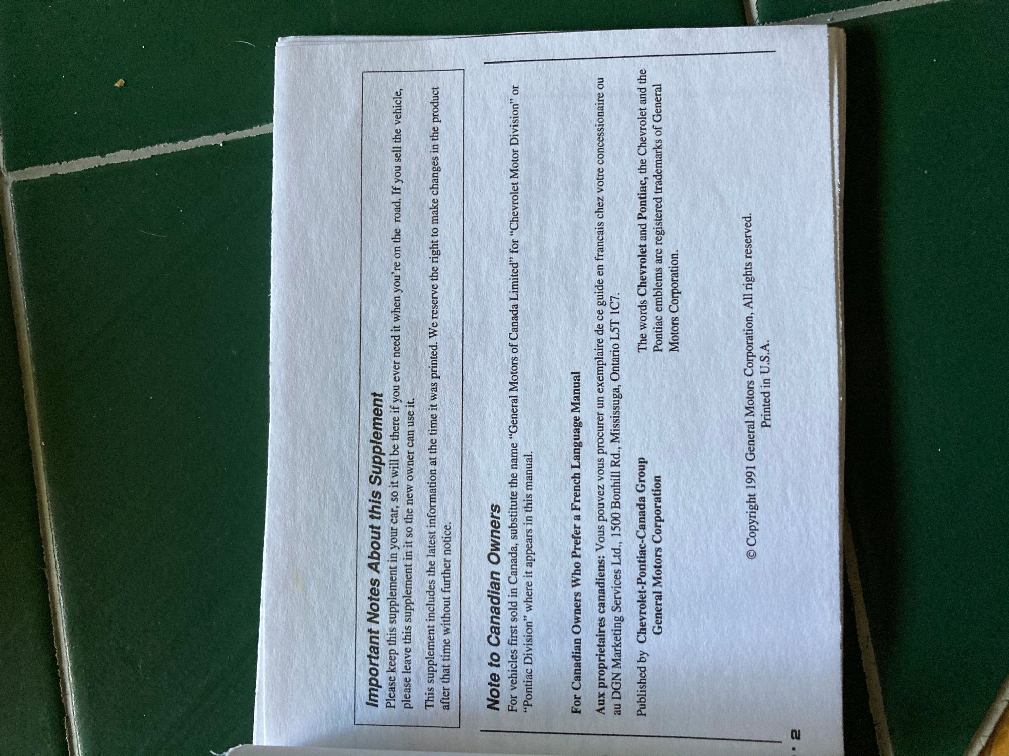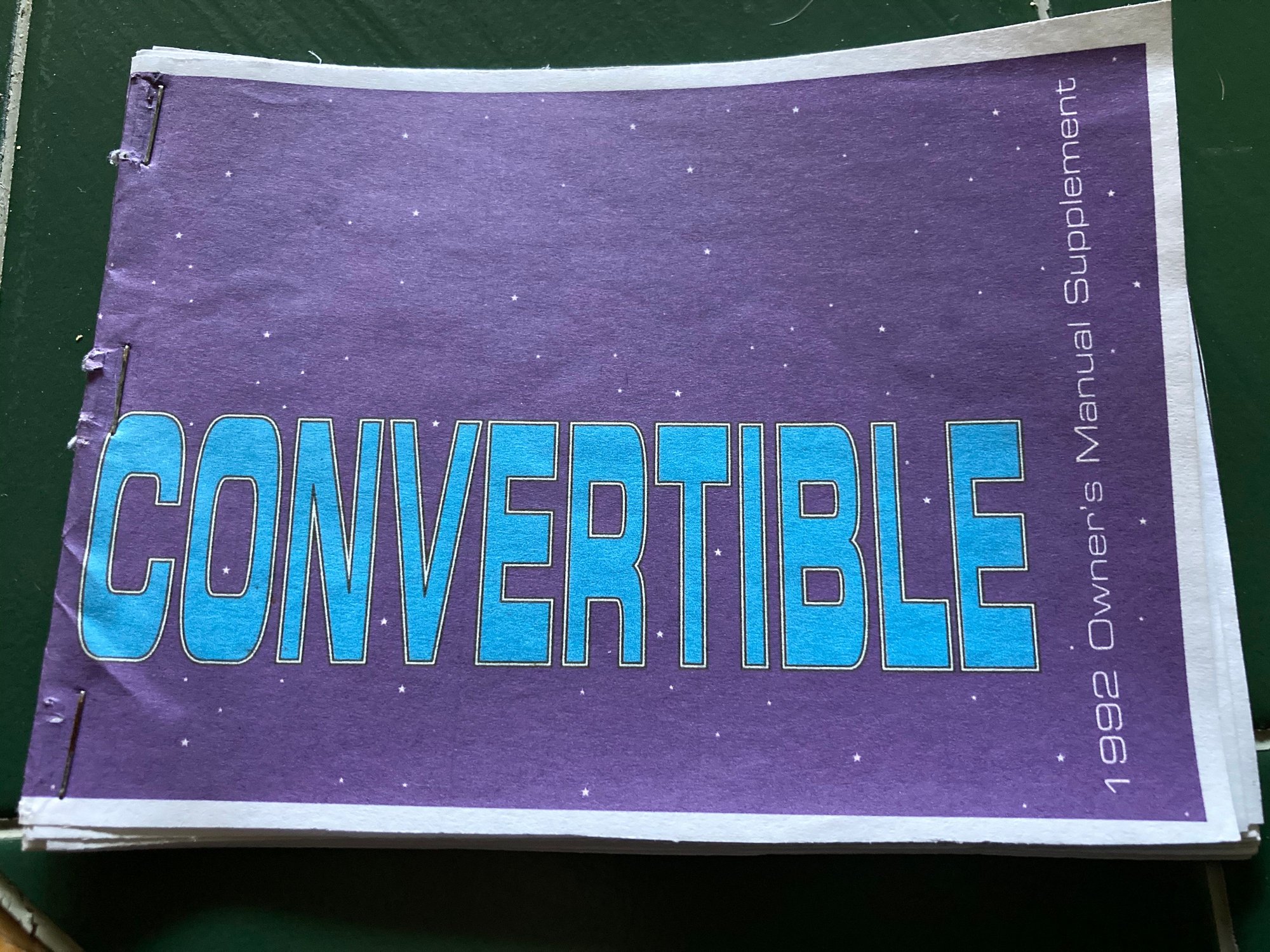 Mine is specific to the 1991 Firebird models made by contract between Gm and ASC, Other years or GM models have their own supplements and are not covered so details like switch positions and Tonneau releases will be different from the ones found on Cameros and even 1992 Firebird models. It is the booklet I received upon delivery of the car to me and I am the original owner. The car was built in Aug or Sept 1990 and transformed to a convertible in March of 1991. I am sure thee are other versions of this booklet for convertible F body cars built from 1987 and up.
