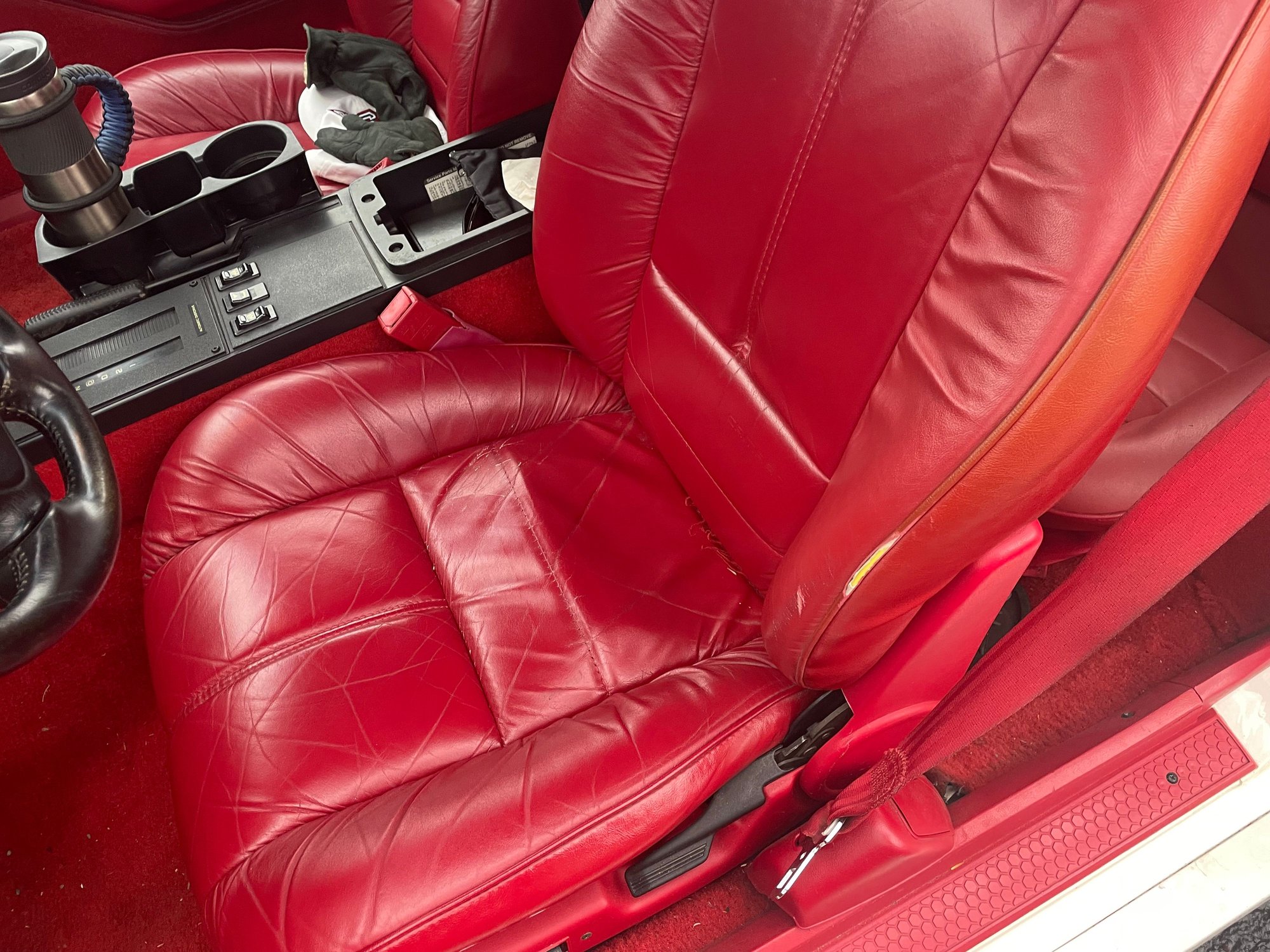 Will be picking this car up next week. Not a perfect car, but a very nice 5.0 convertible. Will make a nice project to clean up over the winter. Owner is an older gentleman, not sure how old, but he has been a fireman since 1966. Front driver seat needs a little attention and a few spots of paint need work but overall a very nice clean car for being an Indiana car all of it's life. Still up in the air about the red interior, I am hoping it grows on me....