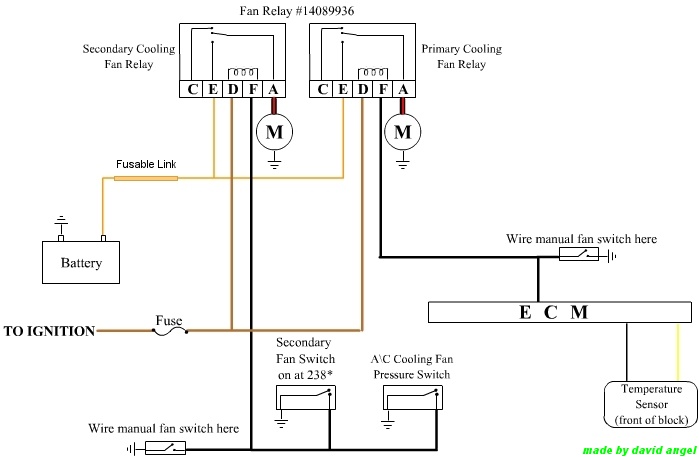 also if i get to the relay or whatever it is on the pass side head, can i open up the wire casing, then connect a jumper wire and ground it to the body. then shouldnt the fan be on all the time when the ignition is on?
