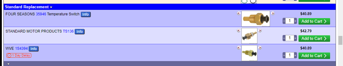 After having the original go bad and the fan running all the time to the GM recommended and not running until 234 to this TS135 the fan starts at 204. Perfect!