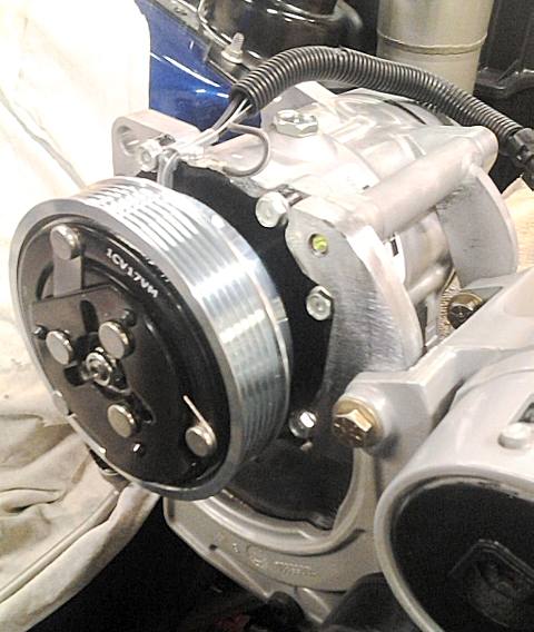 A 6 pulley/clutch is available, http://www.truckerac.com/sanden-clut...-65246010.html, and there is a slight thickness difference. I had to set my compressor back ½" to get the pulley in line with the others.