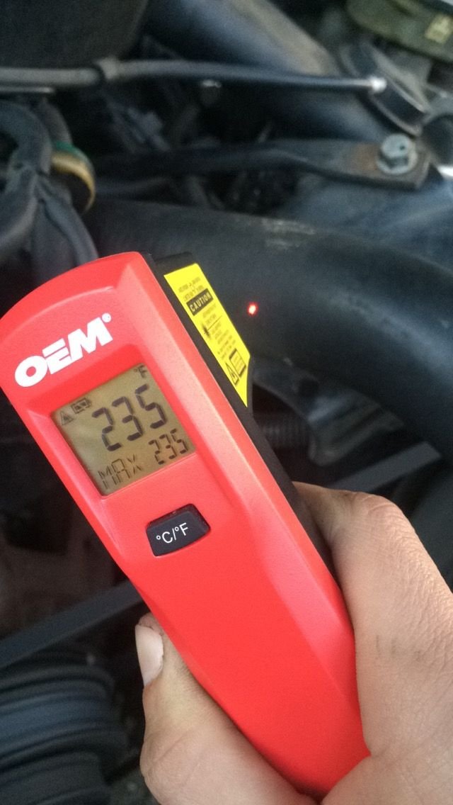 Thermostat Housing Neck reading a temperature of 235F.