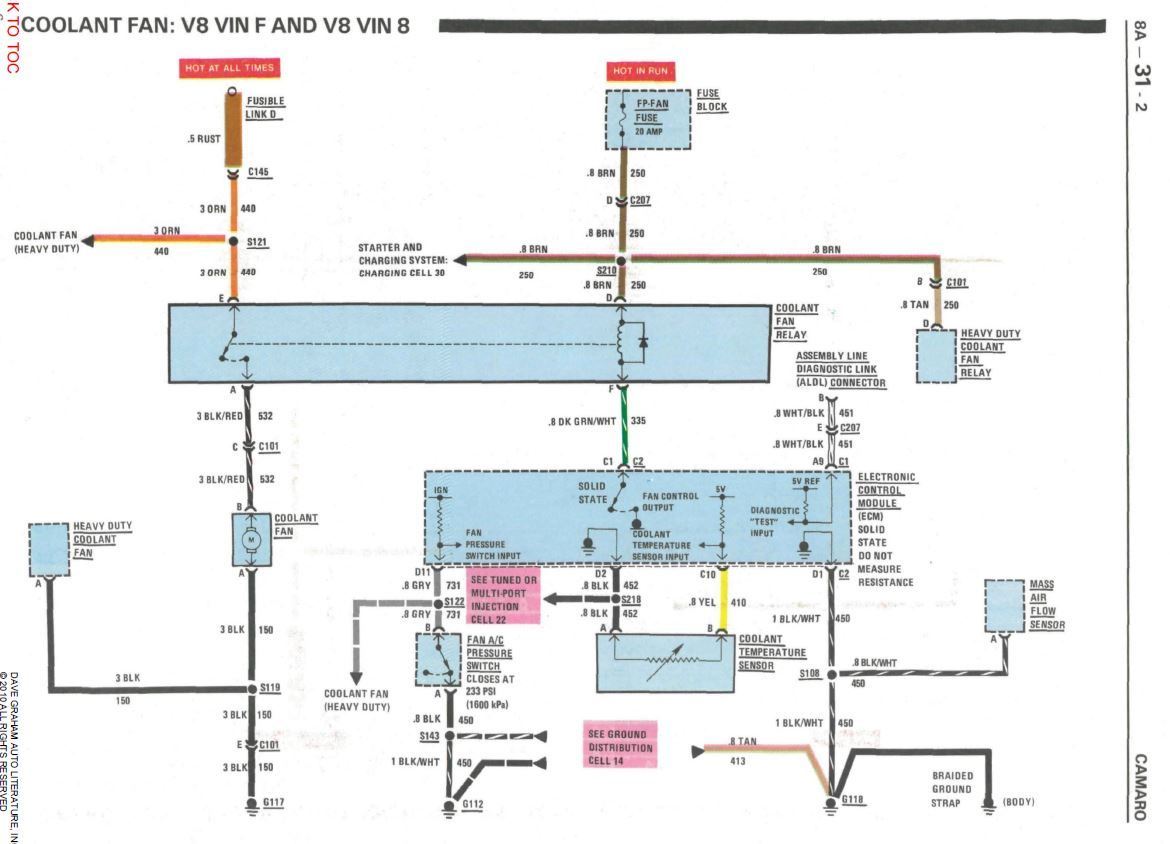 It's a 1986 Camaro IROC Z, 305 TPI, Van does not work (which is why it over heated in traffic), Front Air Dam is on the car, as far as i know my new lower radiator hose works (It's a Gates, a Dayco was on the car when I brought it. The spring house was long gone) and as far as I can tell the Water Pump works. (It spins fine and comes on).