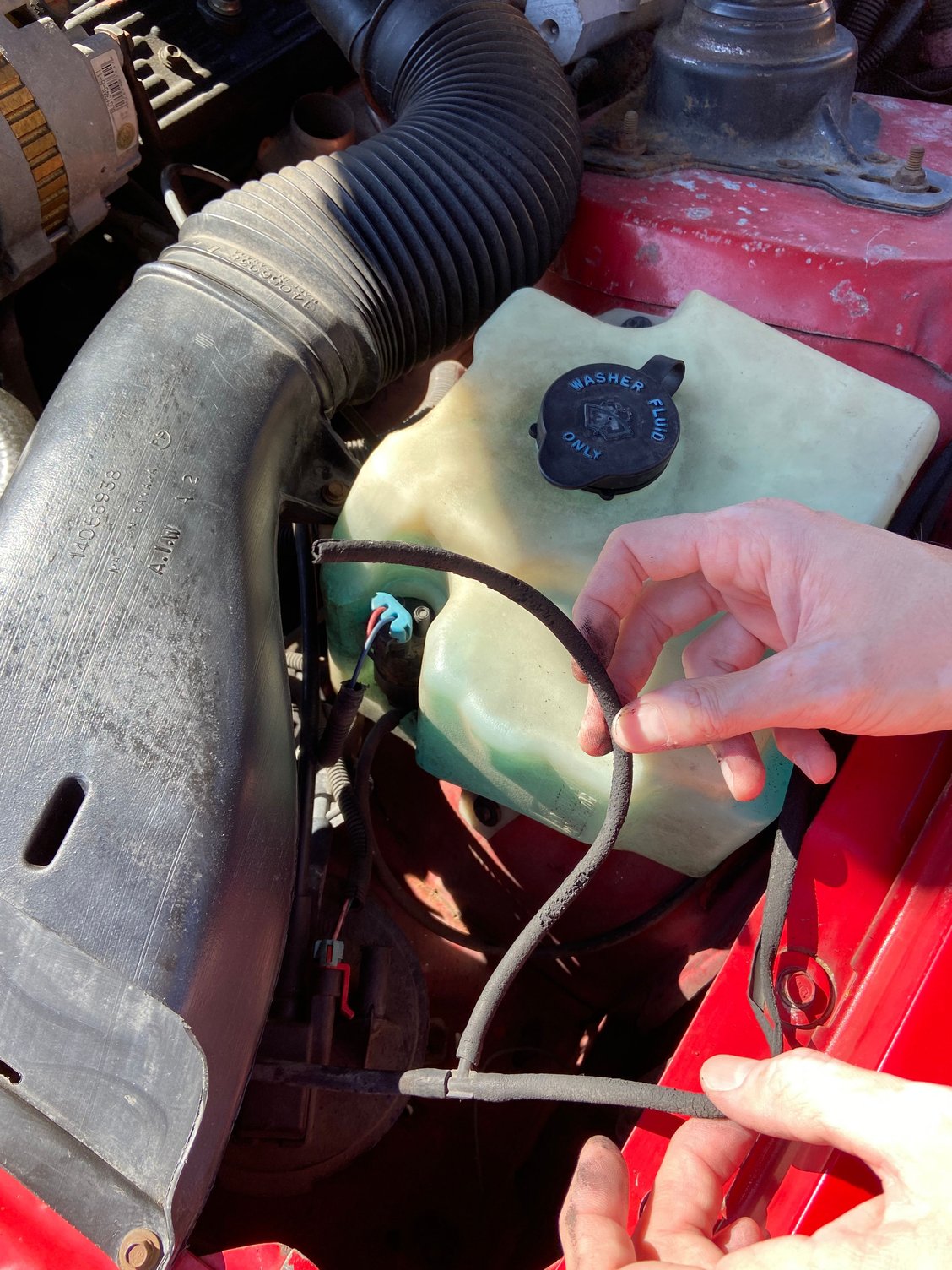 Okay. So finally got under there today. I don’t see a ball thing under the windshield wiper reservoir. Here are some pics of the reservoir removed and the area around it.