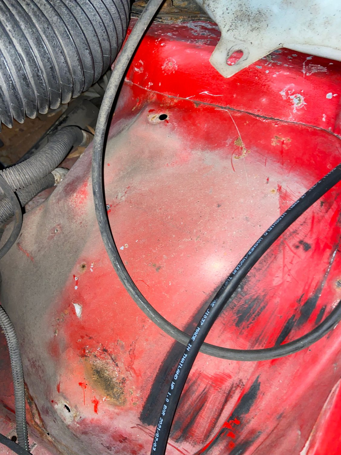 The long hose in this picture runs along the side of the engine bay to the “top” looking part in the other picture. Doesn’t this have something to do with the HVAC or blower?